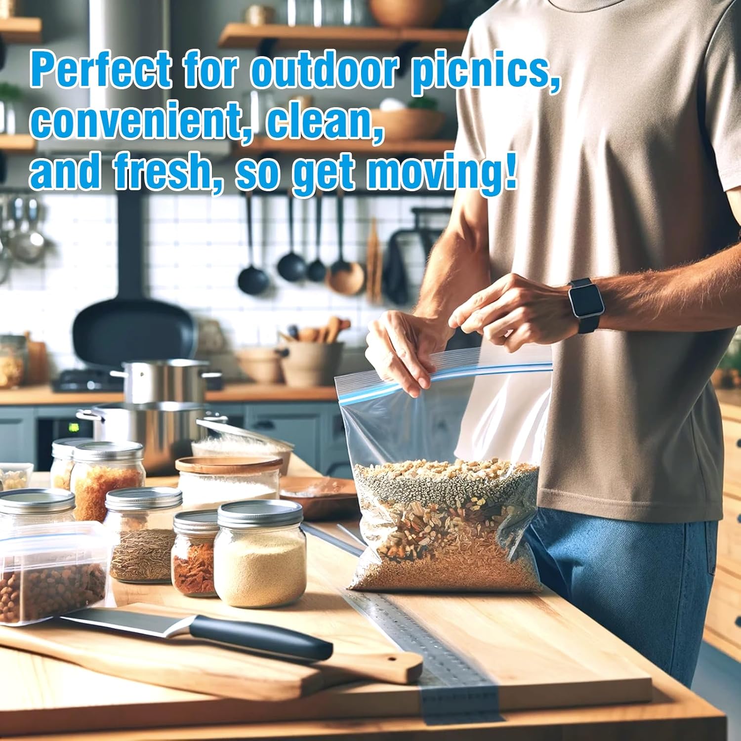 100-Pack Food Storage Freezer Bags – 3 Sizes, Reusable with Zipper Lock for Fruit and Veggies, Microwave and Freezer Safe, No BPA – Strong Seal, Easy to Fill for Lunch, Snacks, and Meals