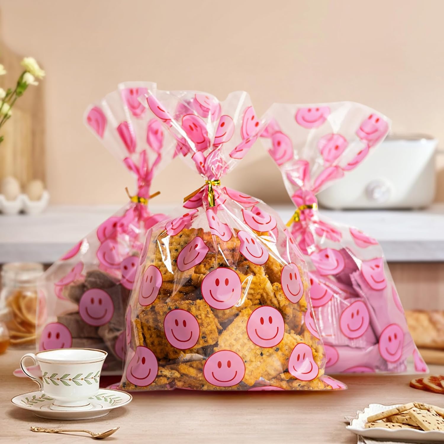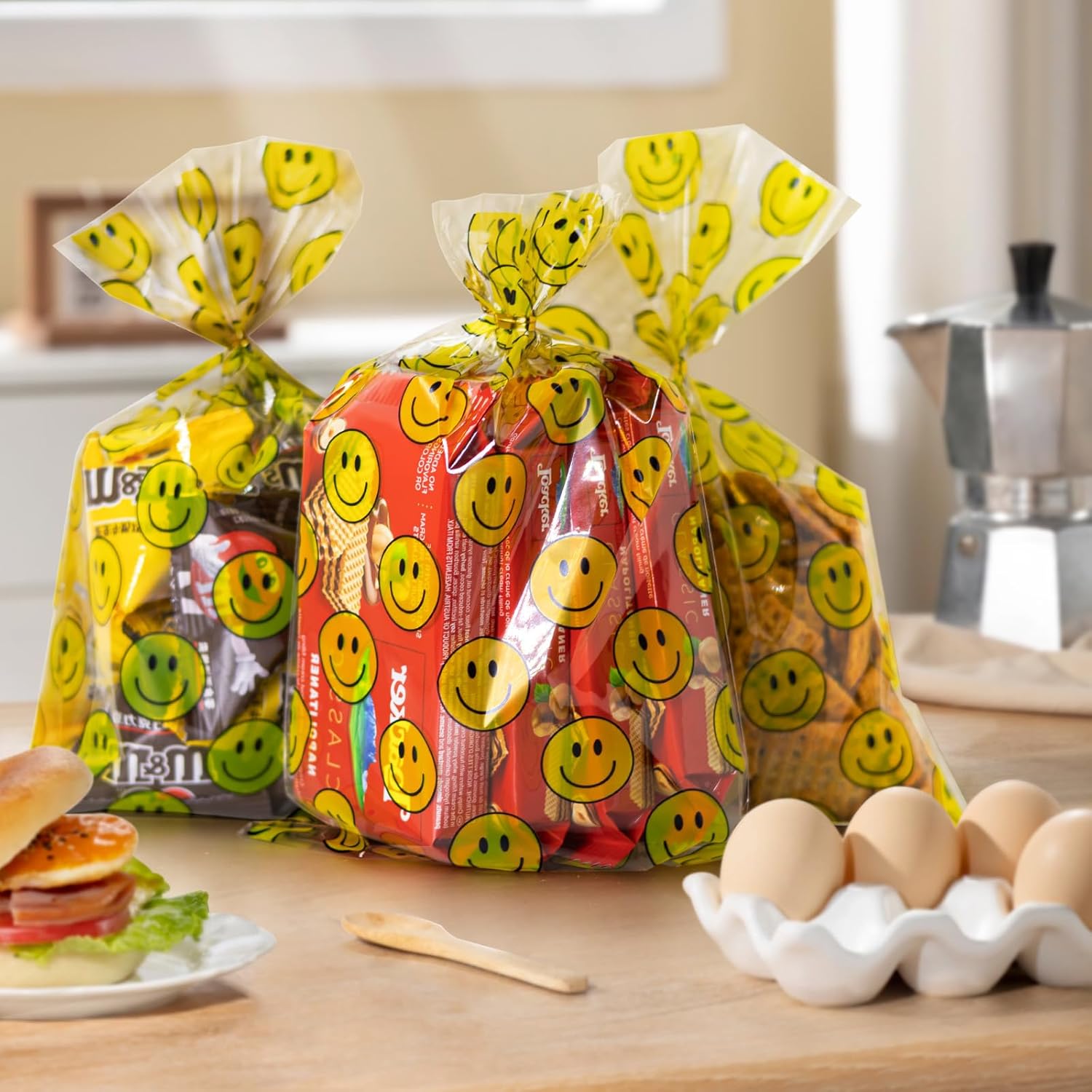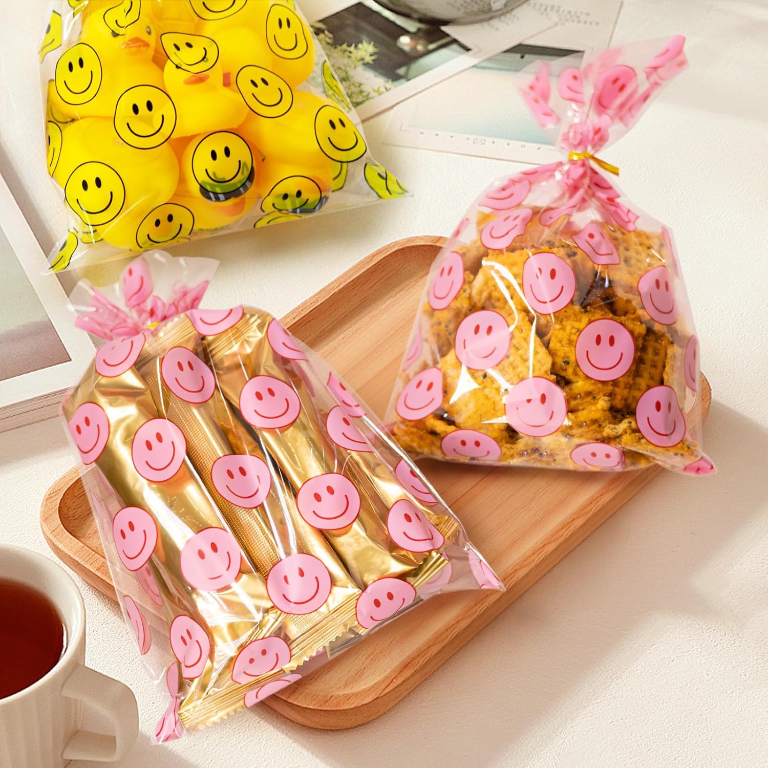Clear Treat Bags for Candy, Snacks & Gifts – These clear treat bags display contents clearly while adding a fun smile face look, making them popular party favor bags for candy, snacks, cookies, chocolates, and small gift items