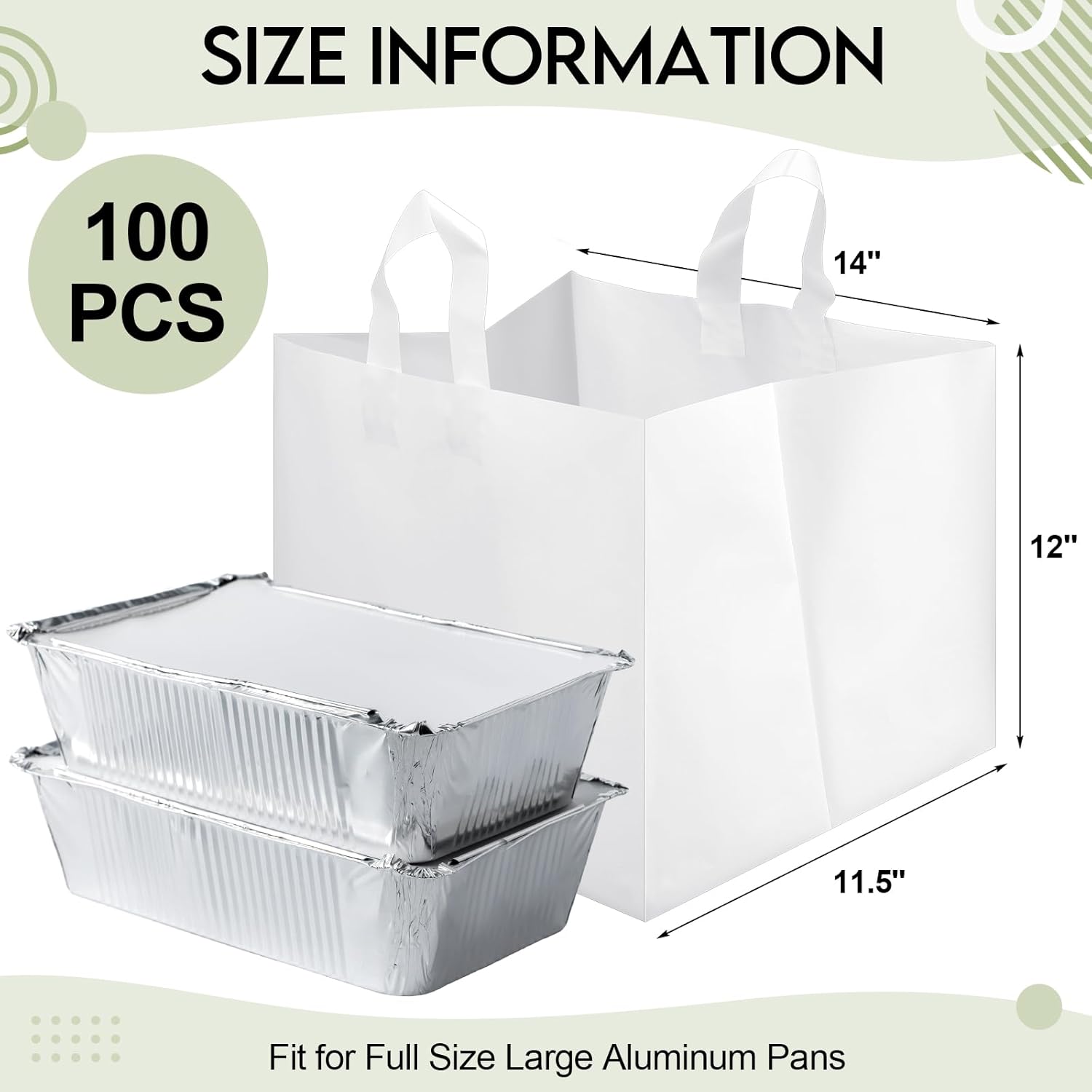 100 Pcs Half Tray Catering Bags Take out Bags Bulk Catering Bag with Cardboard Bottom and Soft Loop Handles for Restaurant, Retail, Business