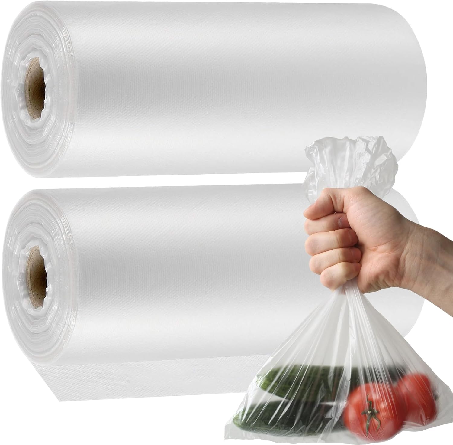 1000 Count 10 x 14 Inches Plastic Produce Bags, Clear Plastic Produce Bag Roll for Bread, Fruits, Vegetable, Kitchen, 500 Bags x 2 Rolls