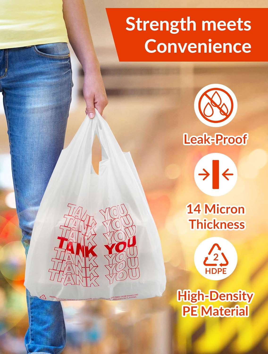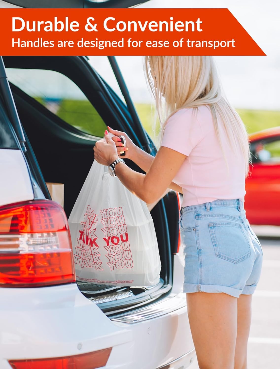 1000 Count White Thank You Plastic Bags with Handles, 12″ x 6″ x 22″, 15 Mic T Shirt Plastic Grocery Bags for Grocery Stores, Retail, Restaurants and Takeout