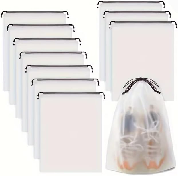 10PCS Waterproof Shoe Storage Bags, Portable Drawstring Travel Organizer for Shoes, Sundries, Transparent Plastic Bags