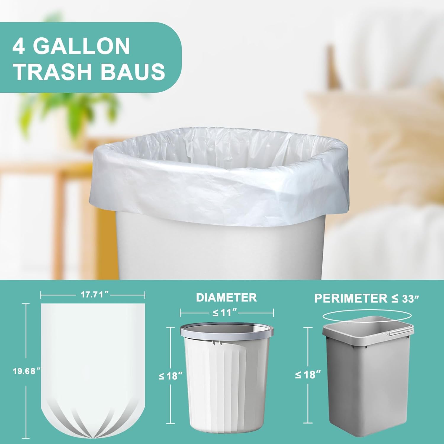 【For 4 Gallon Trash Cans】Small garbage bags for bathroom can sizes are 19.68″*17.71″. Make sure your trash can is <11" in diameter or <33" in circumference before buying. If the height is > 18″, the bag will not fit in your trash can.