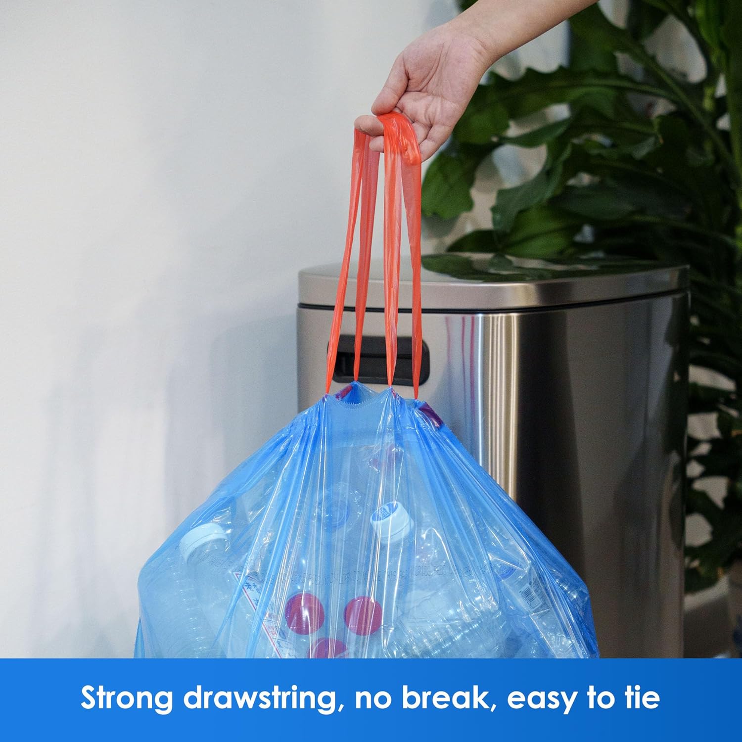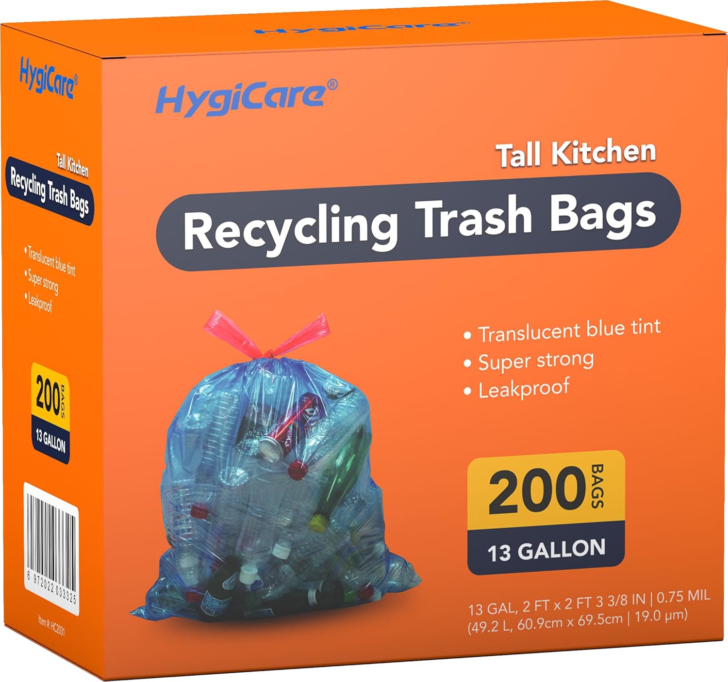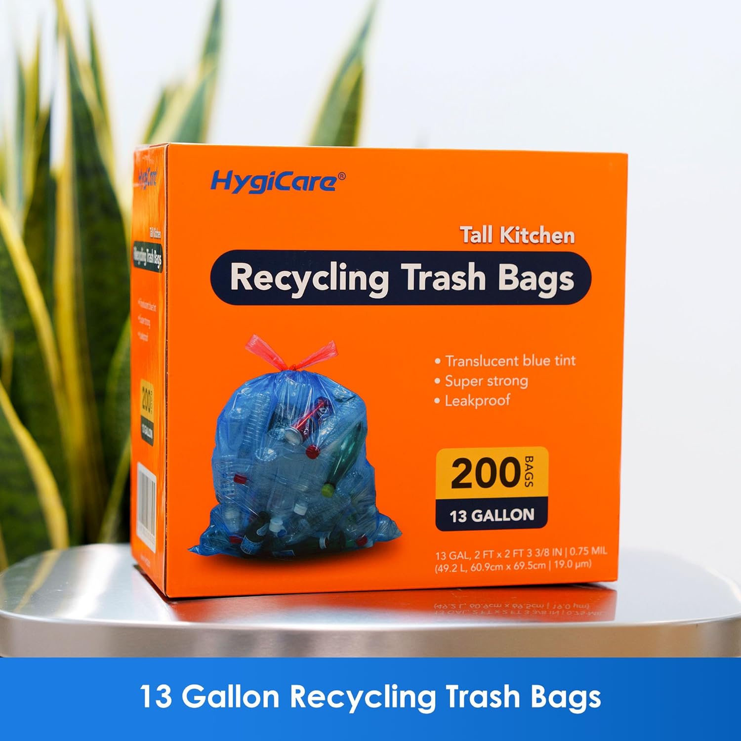 13 Gallon Recycling Trash Bags, Unscented 200 Count Drawstring Tall Kitchen Garbage Bags, Pre-Separated, Ultra Strong, Leakproof, Sturdy, Translucent Blue