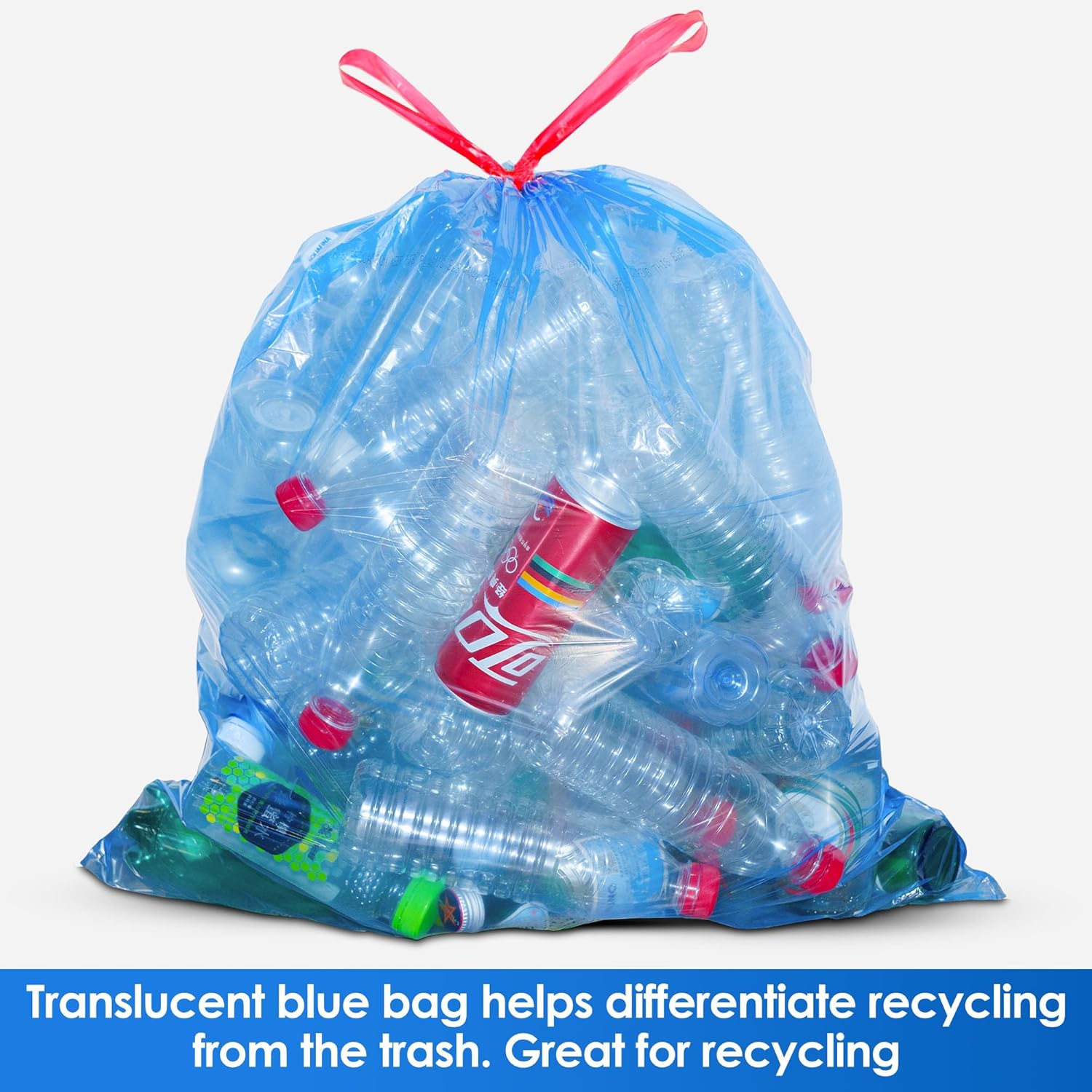 GREAT FOR RECYCLING – Translucent blue bag can see through and helps differentiate the recycling from the trash. It’s great for the regular recycling, like plastic bottles, empty containers, cups, and cans etc.