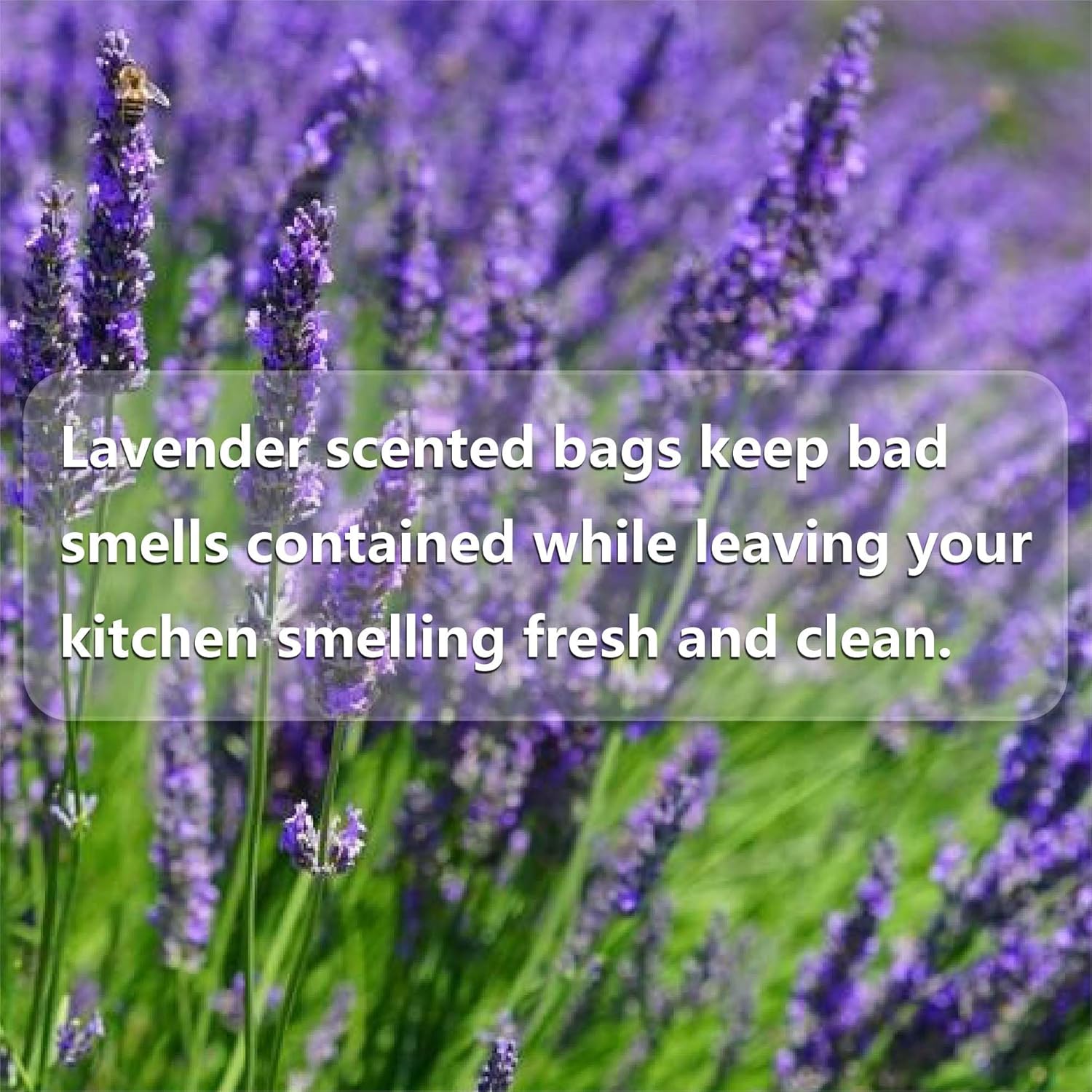 Aromatic Experience: The trash bags are lavender scented, it helps keep bad smells contained while leaving your kitchen smelling fresh and clean.