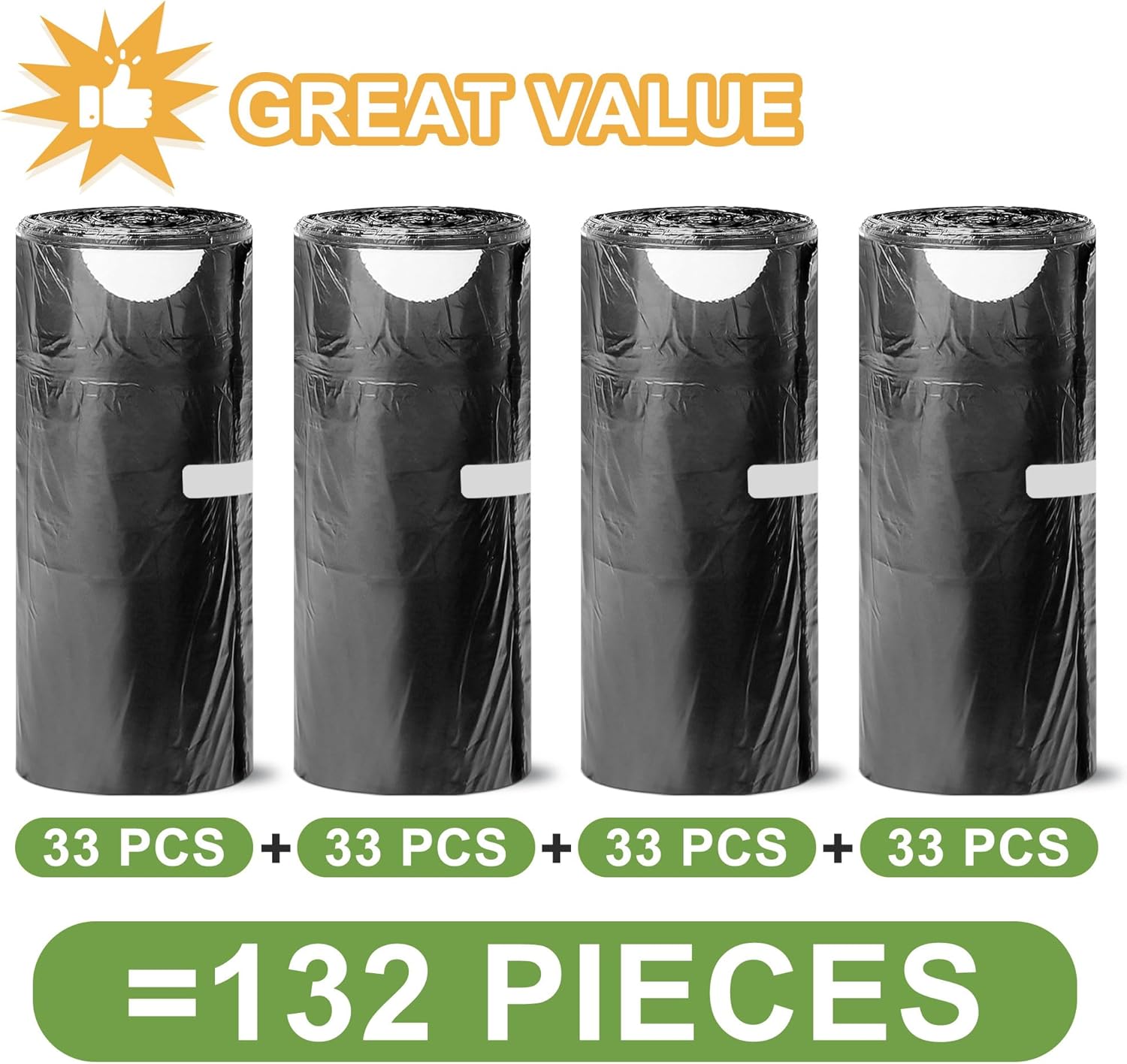 【Small Black Trash Bags 】 Suitable for most small trash can, black trash bags protect your privacy. Each roll of trash bag is designed to be tear free to avoid the trouble of tearing holes. 4 rolls /33 count for your daily needs.