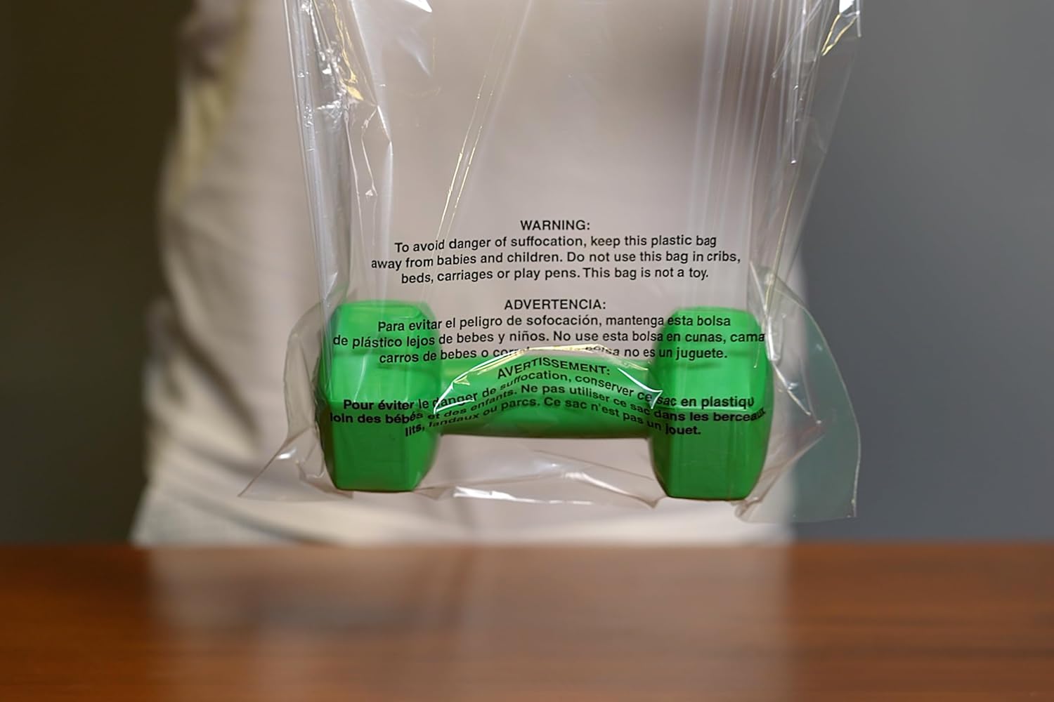 Trilingual suffocation warning printed directly on the bags; no extra labeling needed.