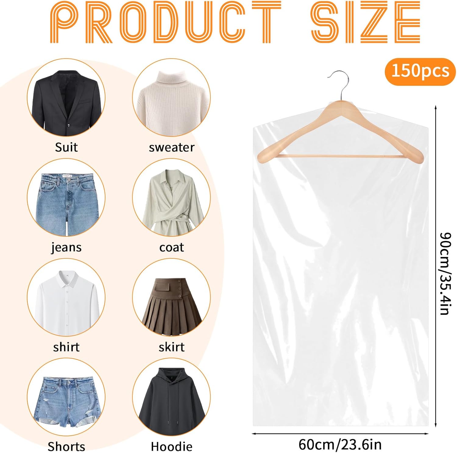 150 Pack Dry Cleaning Plastic Bags, 35.4 x 23.6 In Dry Cleaner Bags Plastic Clear, Dust-proof Garment Bag for Drying Cleaner, Home Storage, Travel, Moving