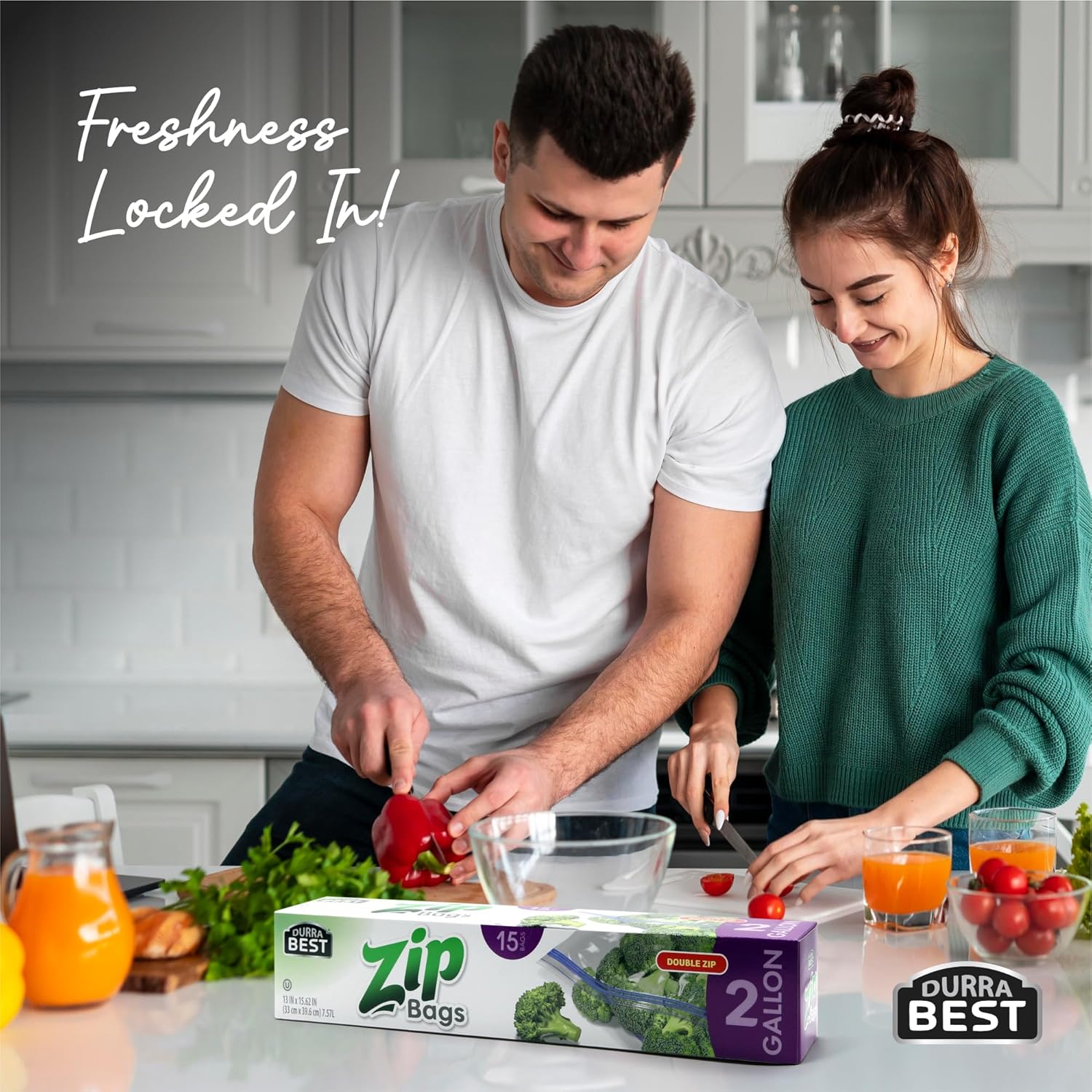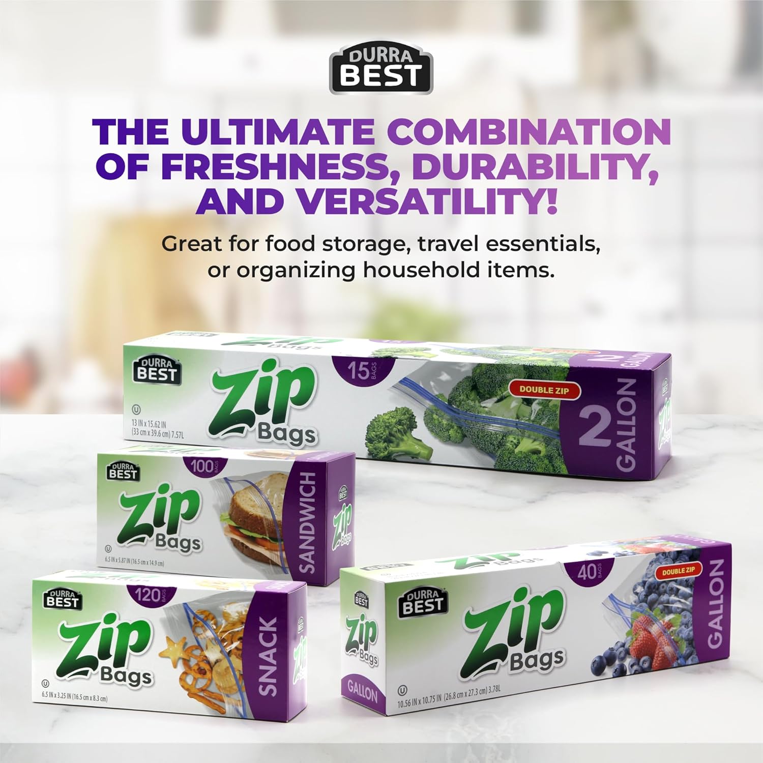 Need more space? These extra-large bags were built for it. DURRA BEST 2 Gallon Zip Storage Bags are made for serious food storage, meal prepping, freezing, or organizing. Whether you’re storing large cuts of meat, marinating bulk portions, or organizing gear — these bags deliver size, strength, and seal. ✔ Extra-Large Capacity2 gallons of space for bigger jobs — ideal for meats, baking items, or meal kits. ✔ Double Zip SealAirtight and leak-proof to keep food fresh and safe. ✔ Freezer ReadyNo freezer burn. Just sealed-in quality. ✔ BPA-Free & Tear-ResistantMade from strong, food-grade plastic you can trust. ✔ Built for More than FoodUse for storage, travel, organization, or packing supplies. Includes 15 premium bags with the quality and performance DURRA BEST is known for. Strong. Simple. Smart Storage.