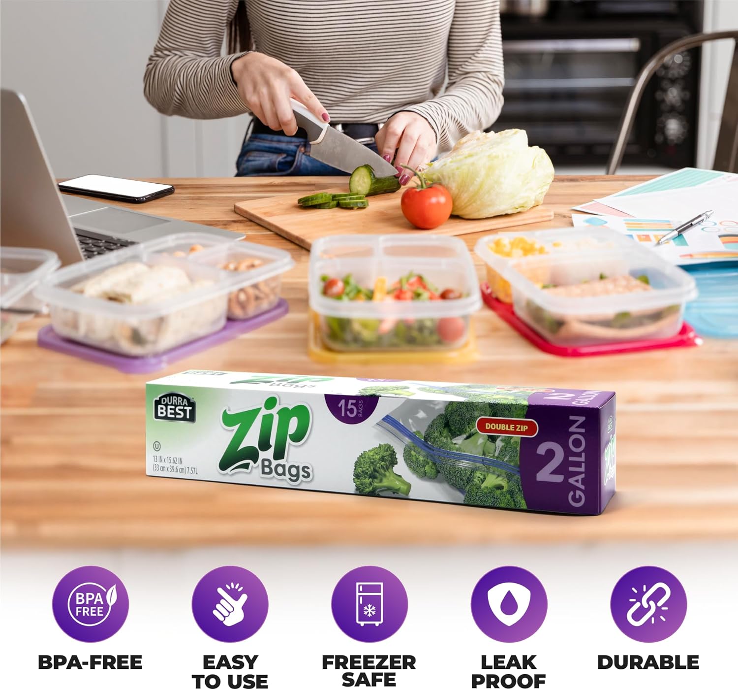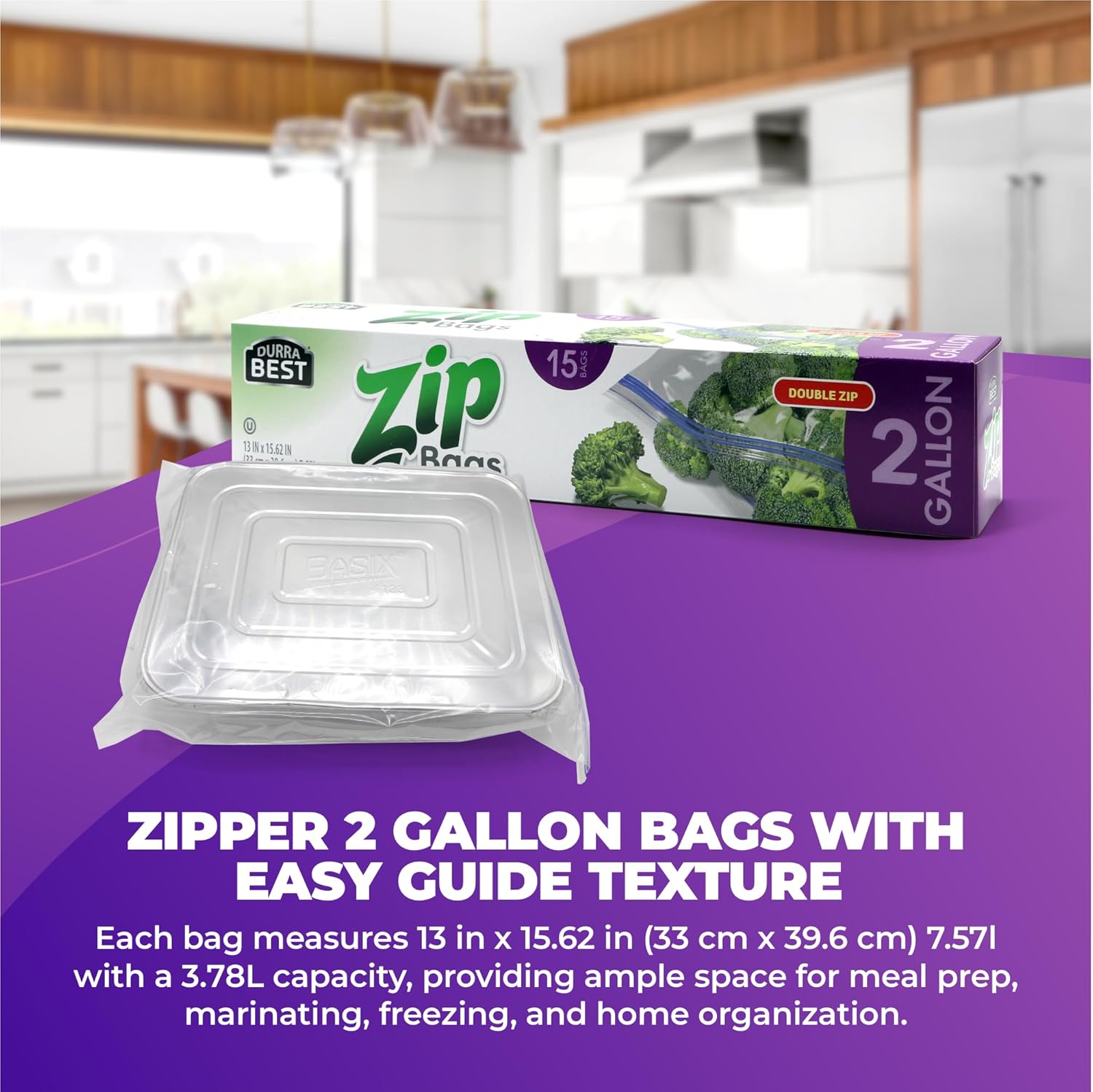 2 Gallon Storage Zip Bags – 15 Count | Extra Large, Leak-Proof, Freezer Safe & Resealable Food Storage Bags with Double Zip Lock | Heavy-Duty, BPA-Free, Multi-Purpose – DURRA BEST