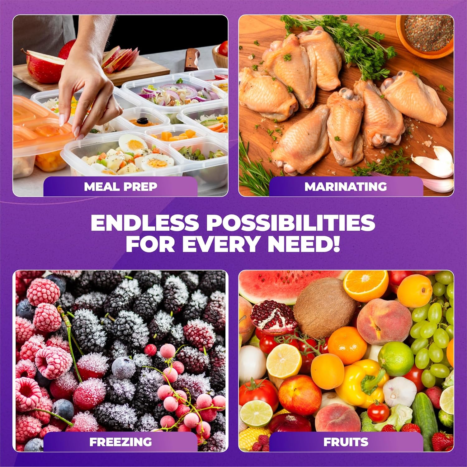 ✅ Freezer & Fridge Safe Prevents freezer burn and protects food from moisture loss.