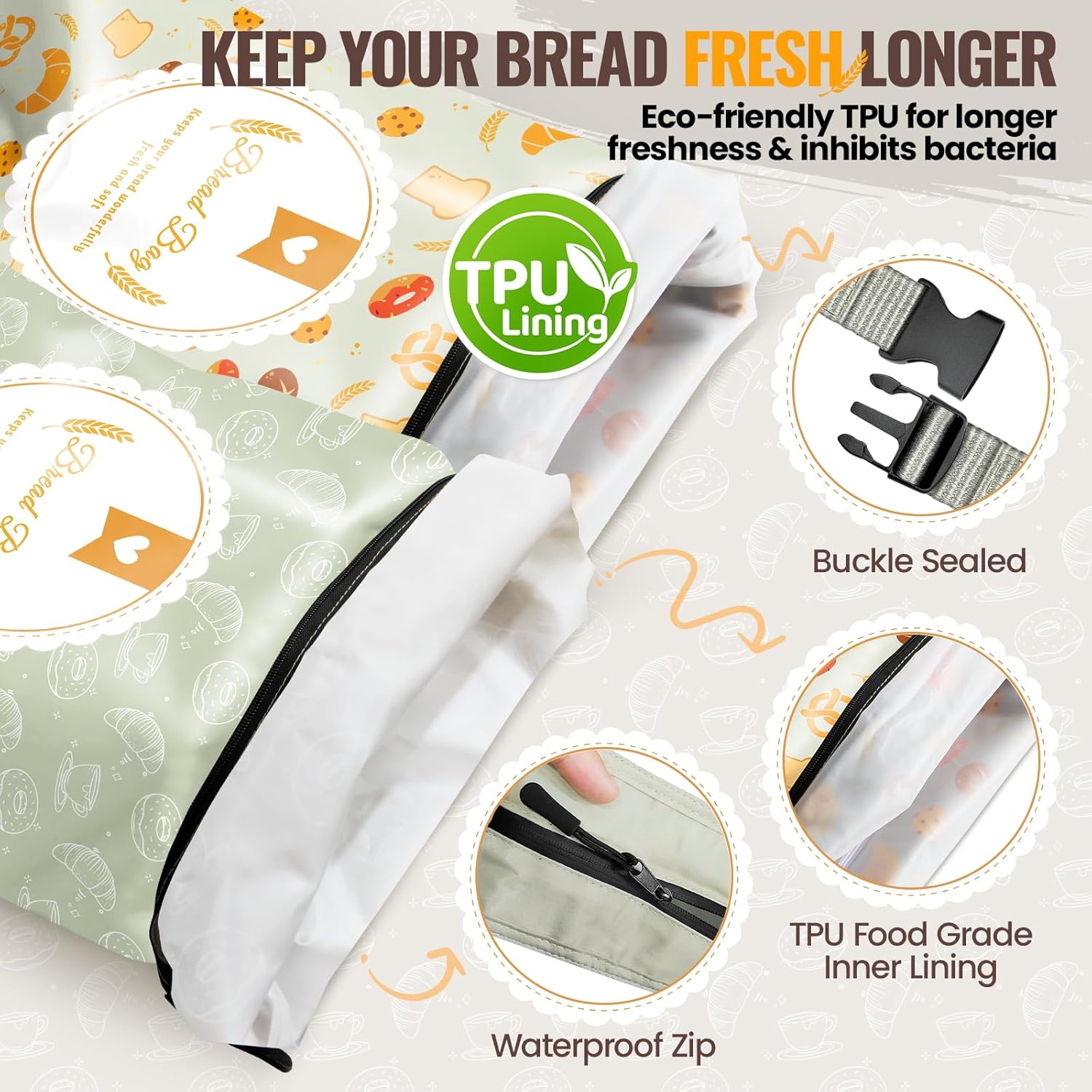 【Easy to Clean】This bread storage bag is durable and machine washable. The sublimation print will not fall off even when machine washed. The isolation lining allows crumbs to fall off with a shake, making care effortless. Our premium bread storage bags ensures hygiene and stays clean for a long time without frequent washing.