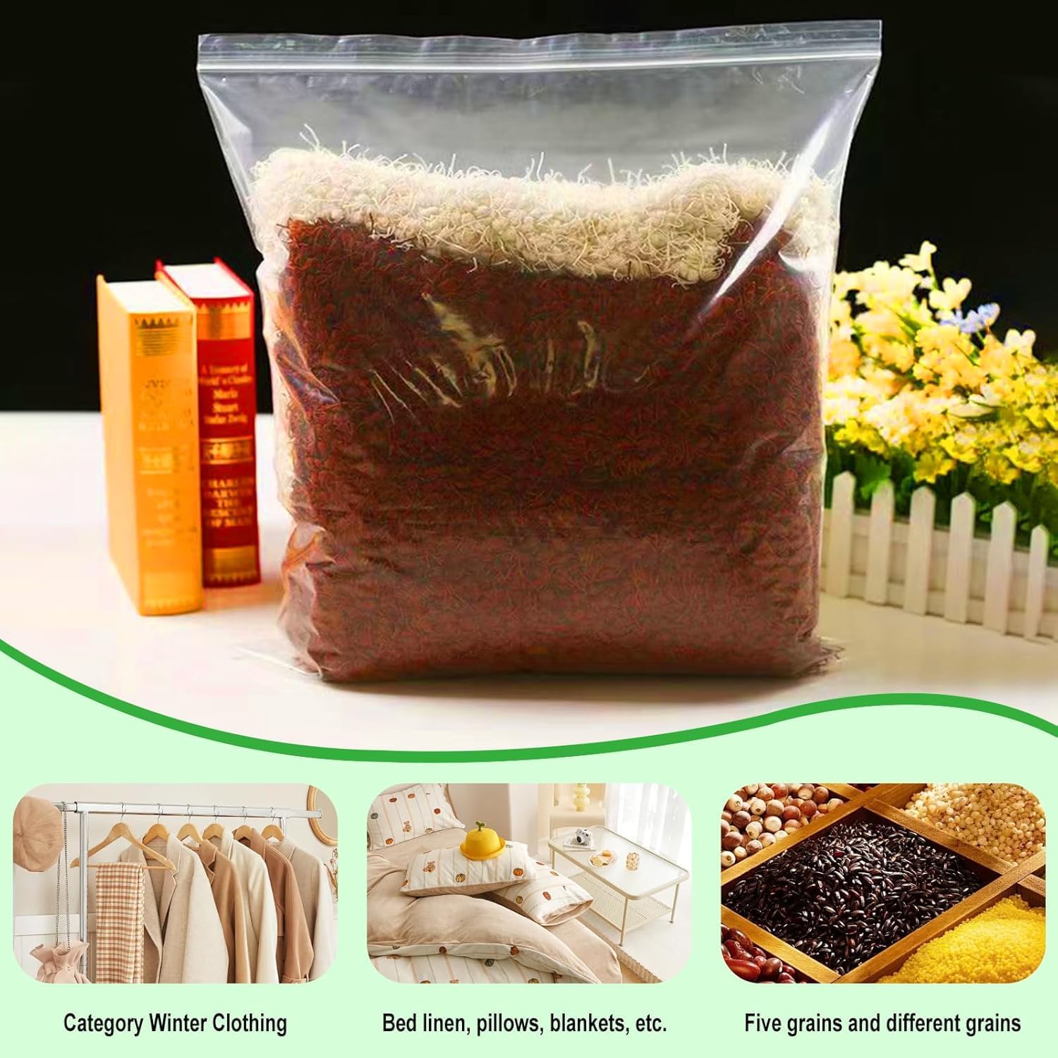 【Versatile Uses】:Use the clear plastic bags for linens, bedsheets, toys, and other brick-a-brack. Or use the extra large waterproof storage bags to store and organize your stuff. They’re great for packing, moving, and organizing – and as large freezer bags too.
