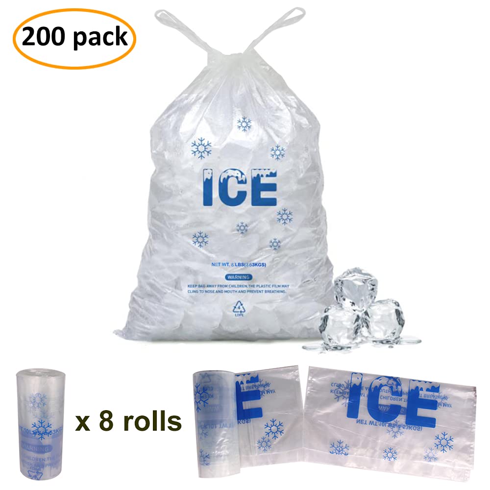 Package Included: 200 pack 11 x 19 Inch 8 lb plastic ice bags, 8 rolls (25pcs per roll).