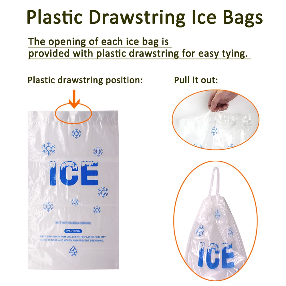 Special design: The opening of each ice bag is provided with plastic drawstring for easy tying, but please note it’s not recommend to lift by this drawstring.