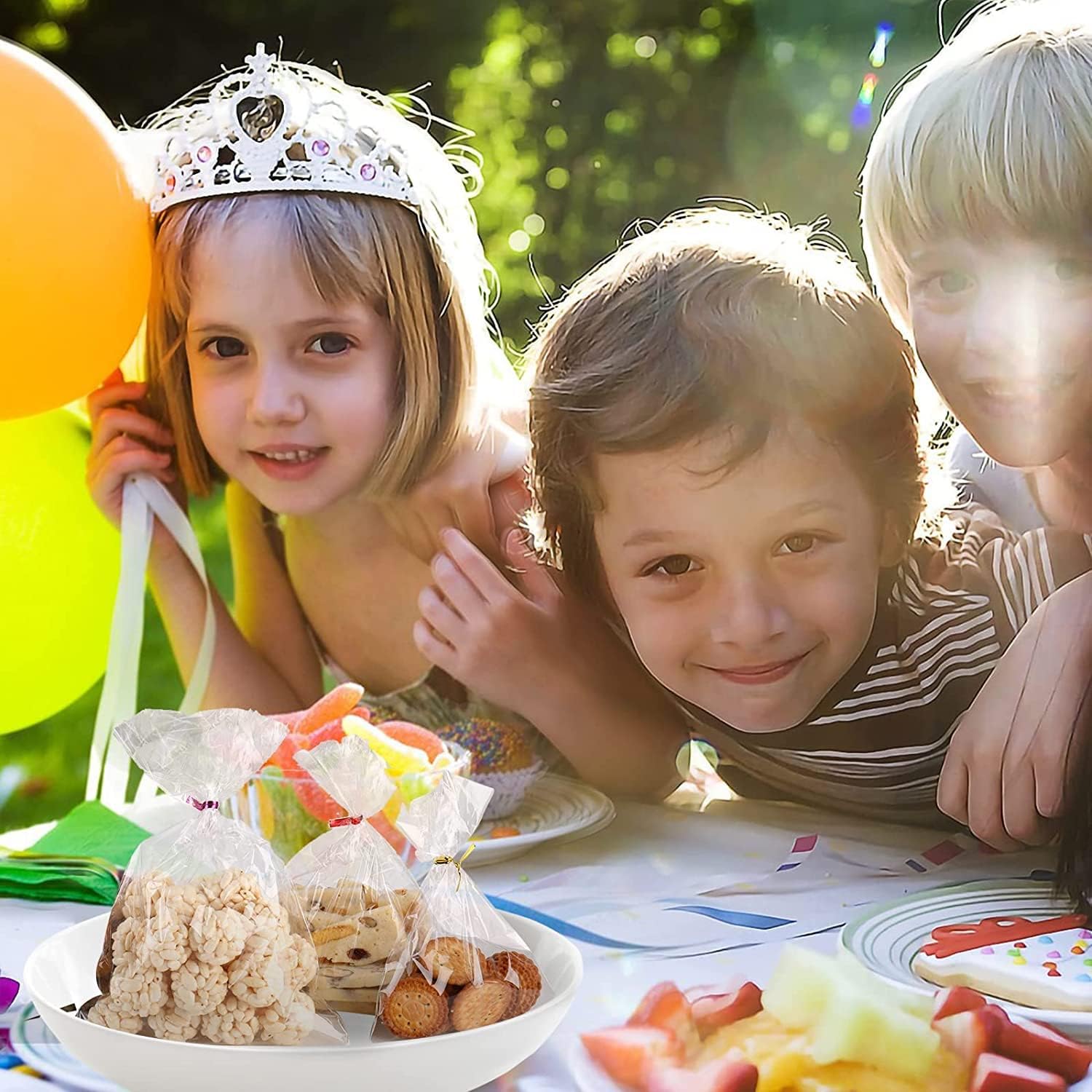 RESEALABLE PACKAGE: 200 treat bags with 200 twist ties in a re-sealable bag, keep fresh and convenient store and re-use! Birthday, Wedding, Party, Home and Kitchen must-have!