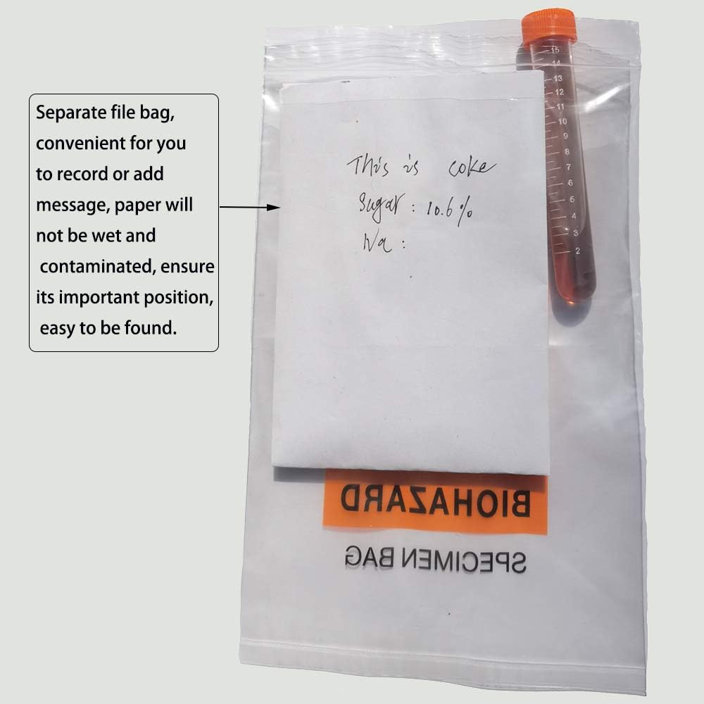 200pcs 6×9.8in/15x25cm Biohazard Specimen Bags;Usable size 6×8.5in/15x22cm