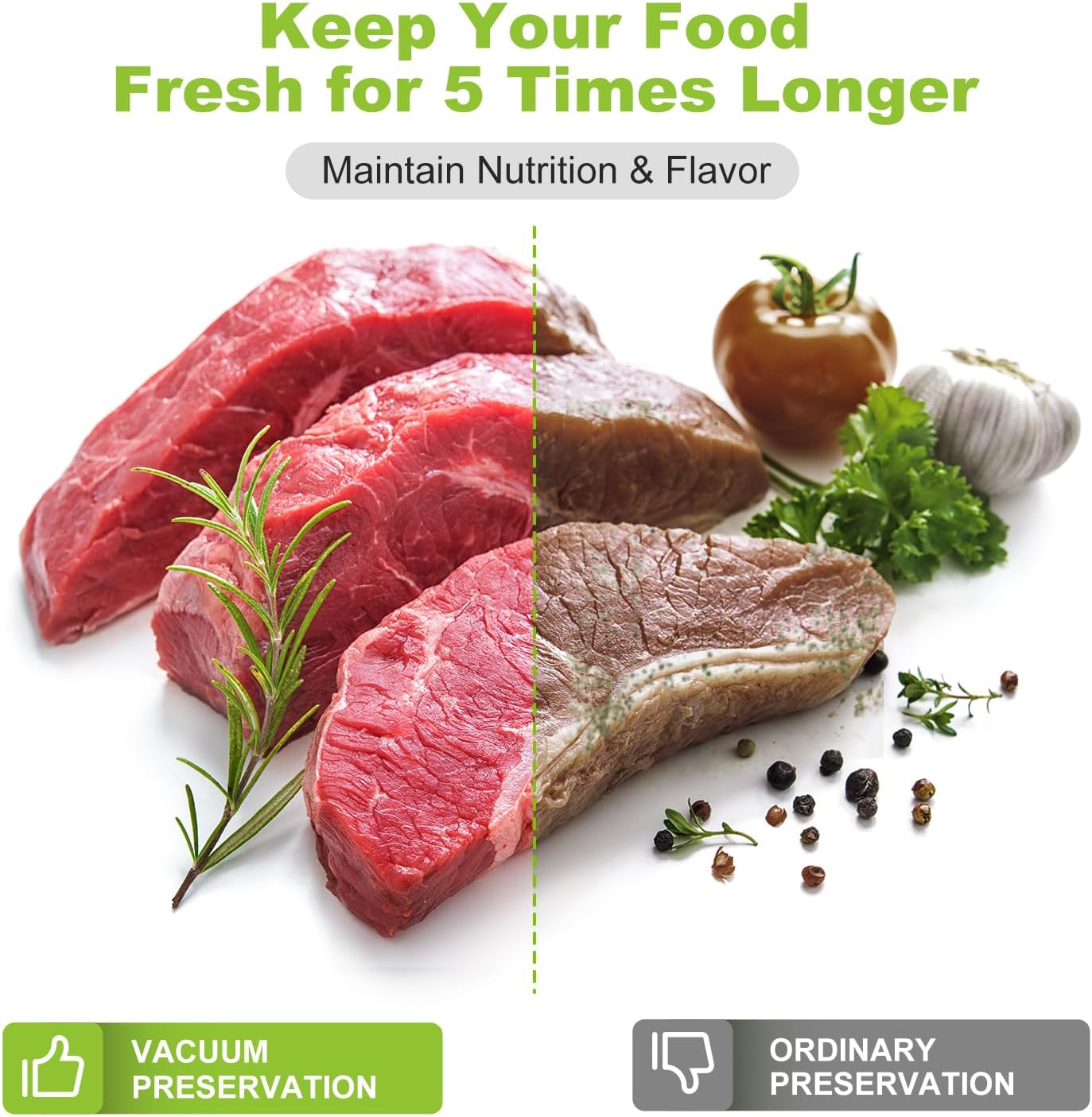 Extended Shelf Life: Extend food storage time by 3-6 times, locking in freshness, flavor, and nutrients. These bags also prevent punctures and freezer burn