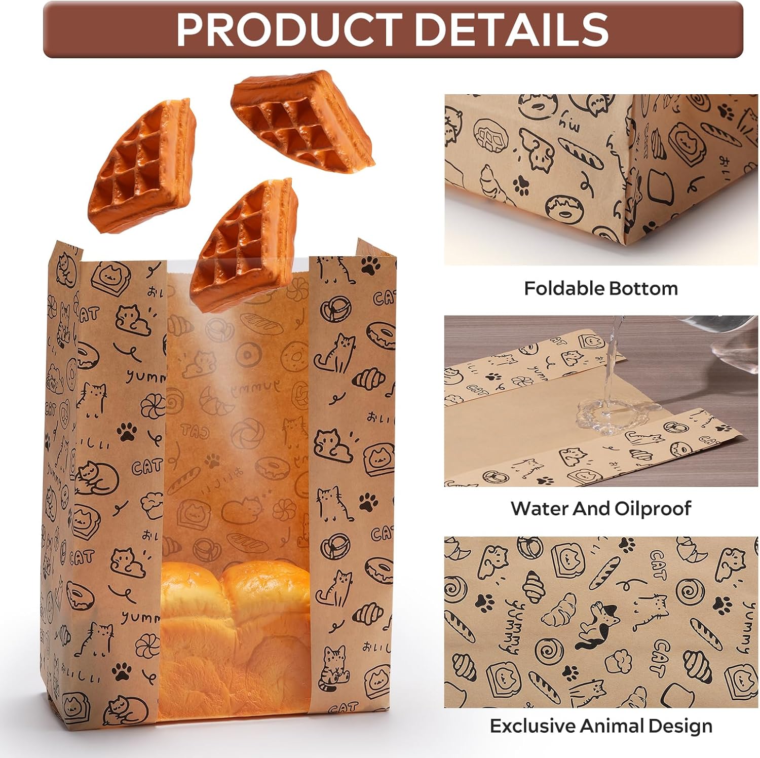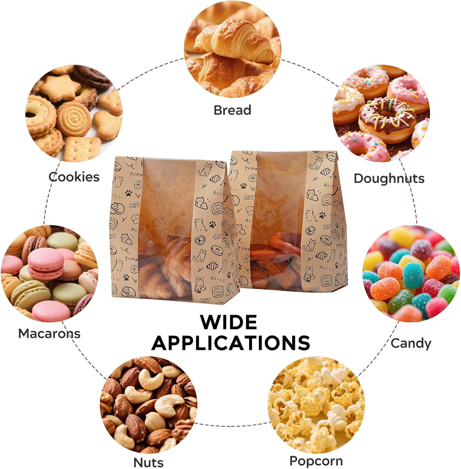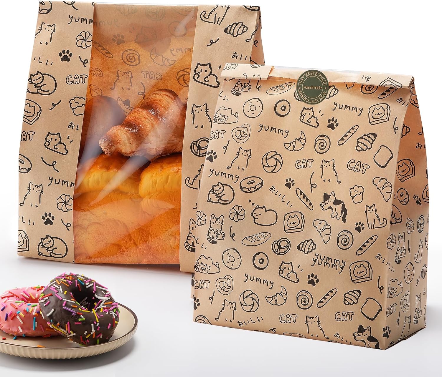 Gift-Ready with Bonus Labels & Charming Prints: Each set includes 24 adhesive stickers, perfect for sealing, branding, or customizing your bread packaging for homemade bread. The bags are adorned with adorable cats, Japanese text, and soft bakery-style icons—adding warmth and personality to every package.
