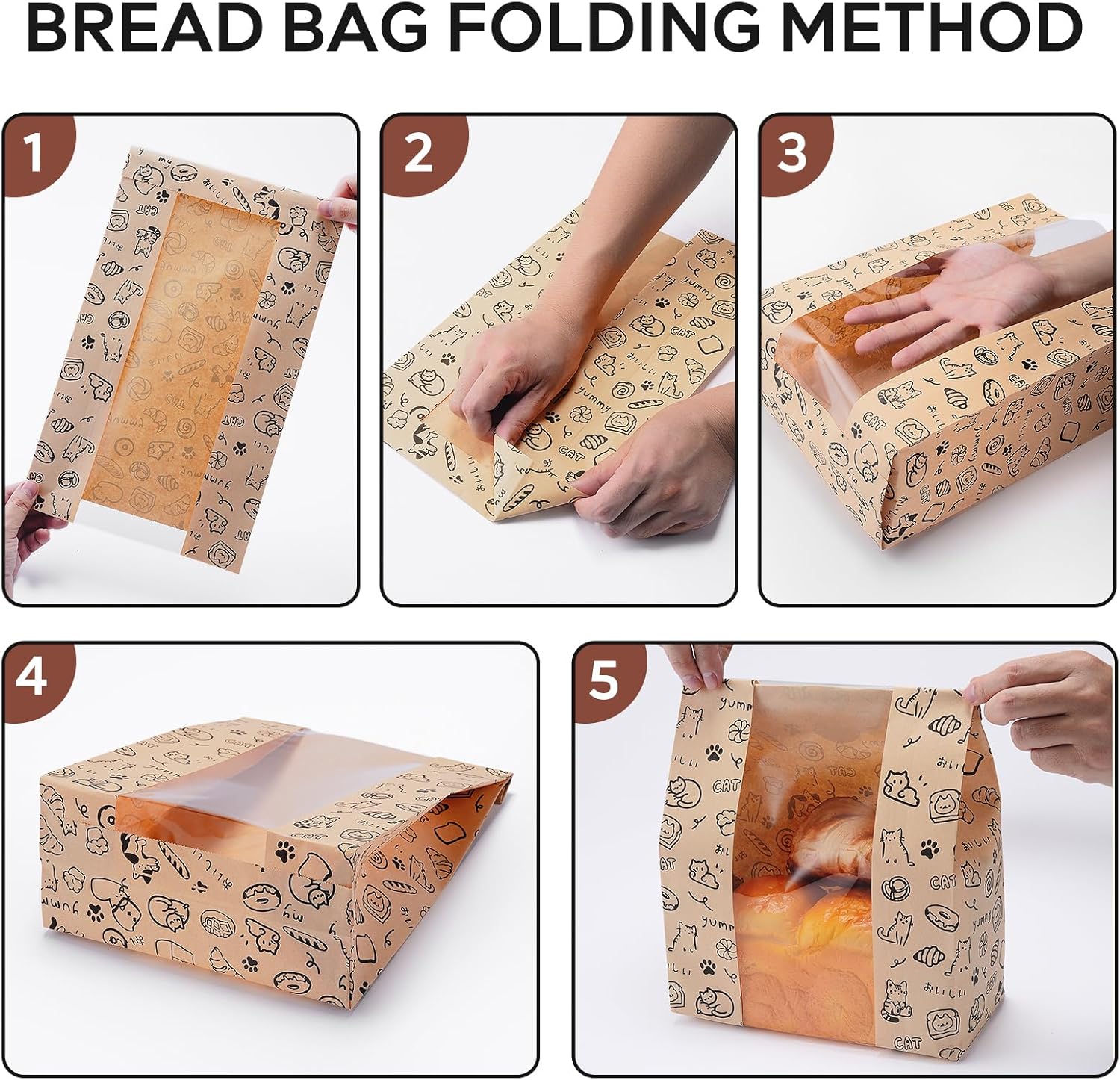 Stand-Up Design with Clear Window: These bread paper bags for homemade bread include a transparent front panel and square bottom, so they stand up when filled and fold flat when stored.