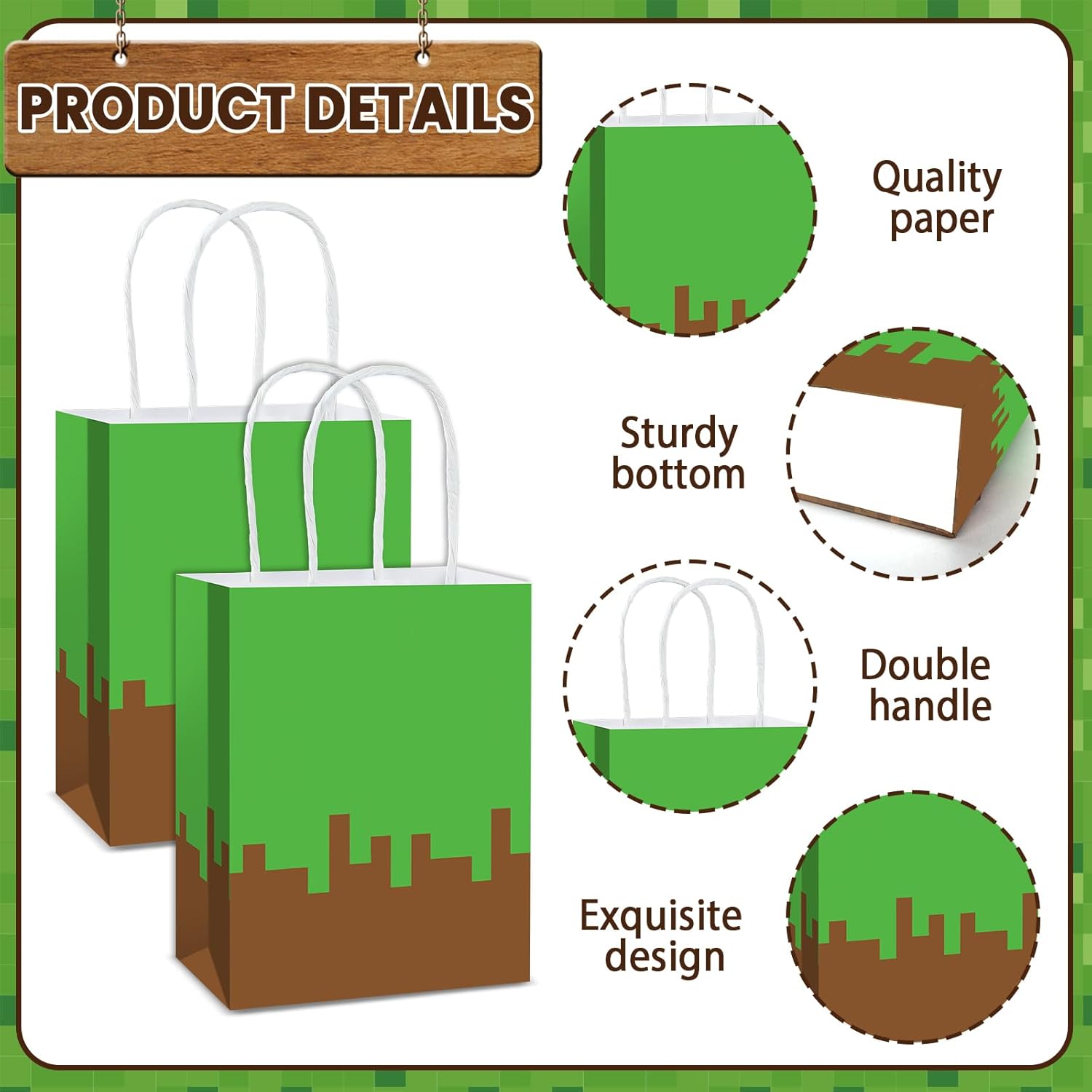 Various occasions: These video game themed paper candy bags are a fun and versatile addition to any celebration. These mining themed party pixel gift bags with handle are ideal for birthday parties, pixel parties, pixel game-themed parties, retro gaming events, baby showers, and more.