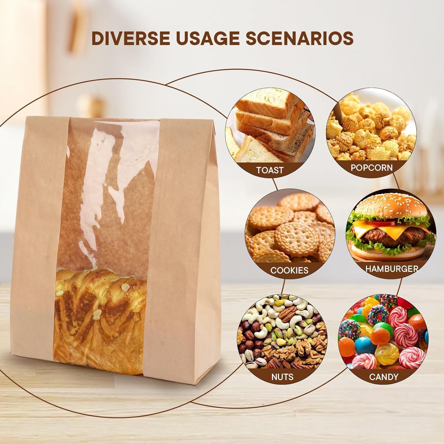 30 pack bread paper bags with window, including 30 homemade bread storage label seal stickers (13.7×8.3×3.5 inches)
