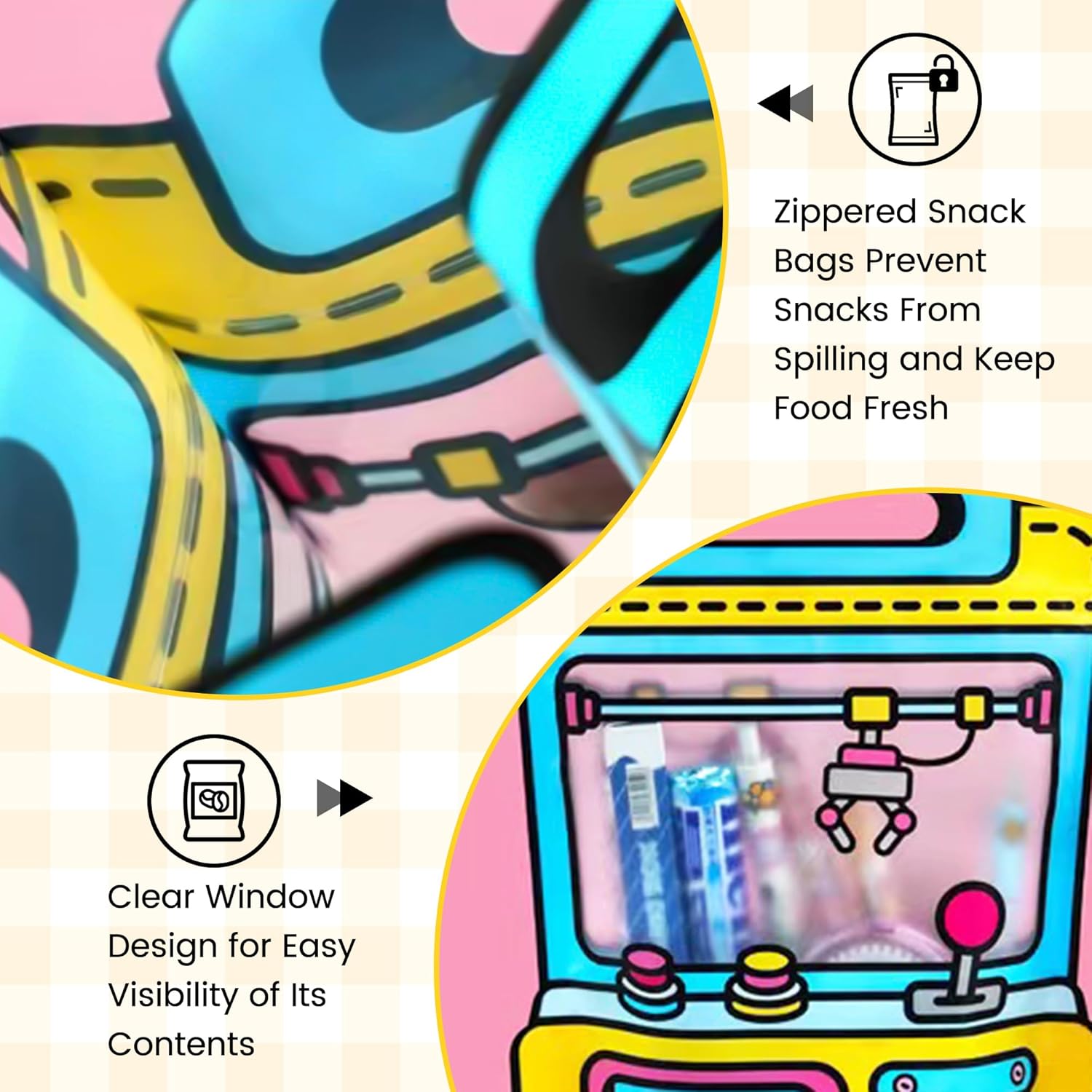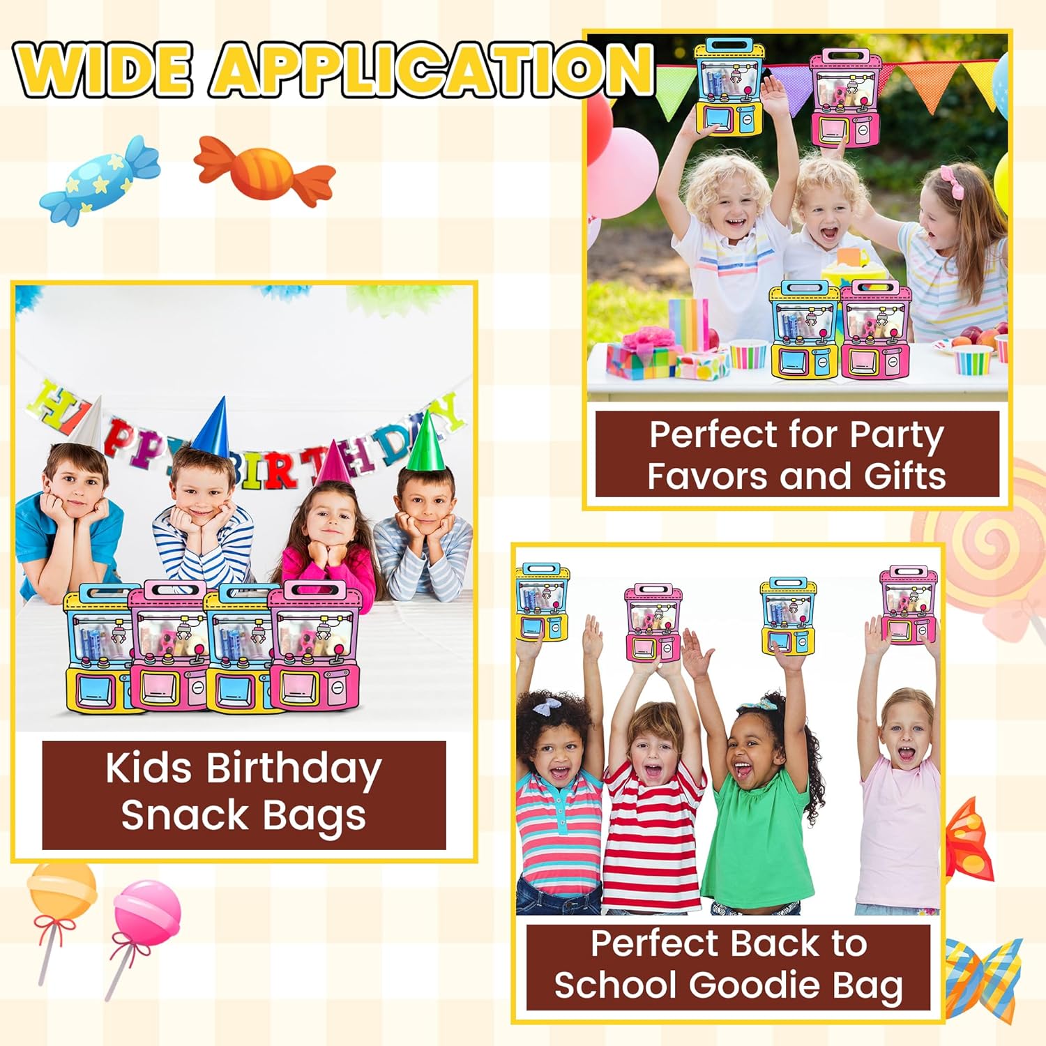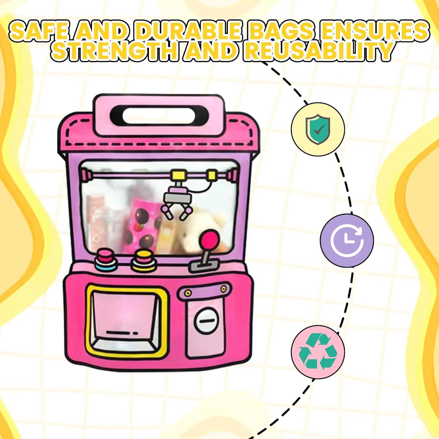 Goodie bags for kids with handle: our adorable claw machine snack goody bags with handles that allows for little hands to grab and go anywhere.Plus,the kids candy bags for party favors compact size fit neatly into backpacks. Give your child the gift of convenience and fun with our unique snack bags