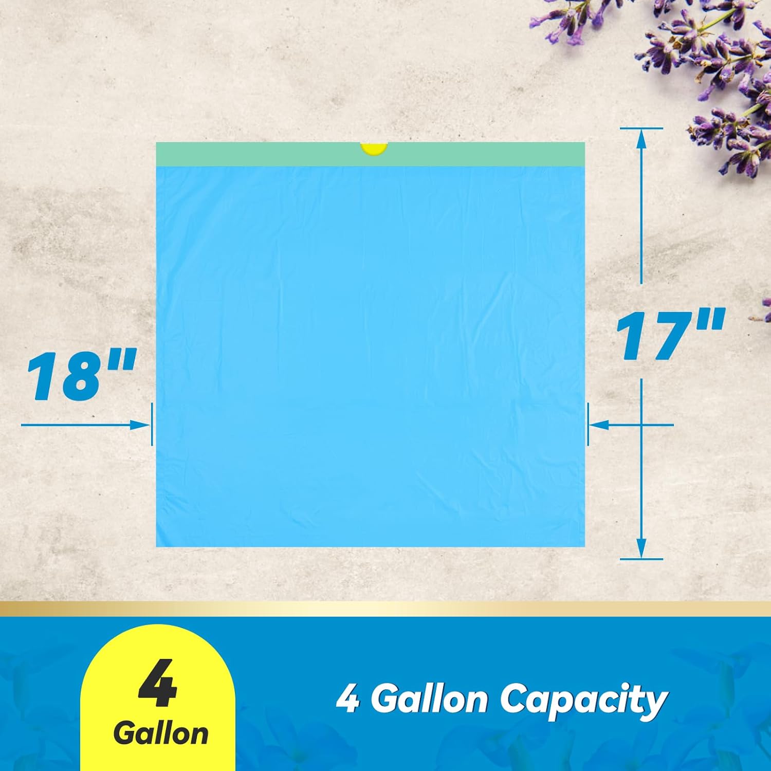 【300 Count Value Pack】:Package included 300 Count 4 gallon drawstring lavender trash bags, providing you a plentiful supply for waste disposal of outdoor camping, bathroom, office, bedroom and kitchen.