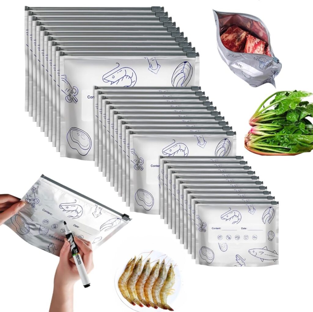【Heavy-Duty & Tear-Resistant Material】Durable puncture-resistant foil freezer bags withstand daily use without leaking or breaking. Ideal for pantry storage and freezer protection of seafood, meat, and leftovers