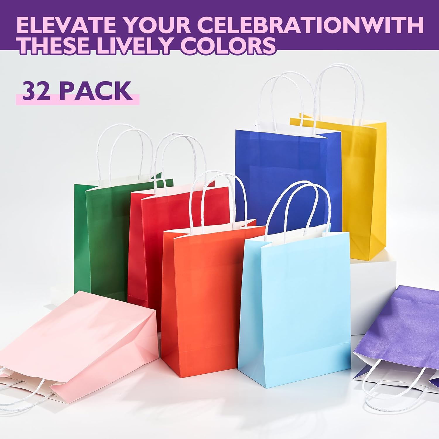 【Paper Bags Color】This set features 8 vibrant colors of small gift bags (4 bags per color), including red, orange, yellow, green, blue, indigo, purple, and pink. Each of these party favor bags is a convenient gift bag with handles, perfect for any celebration. Whether you need colorful gift bags for treats or versatile small gift bags for party favors, this collection has you covered.