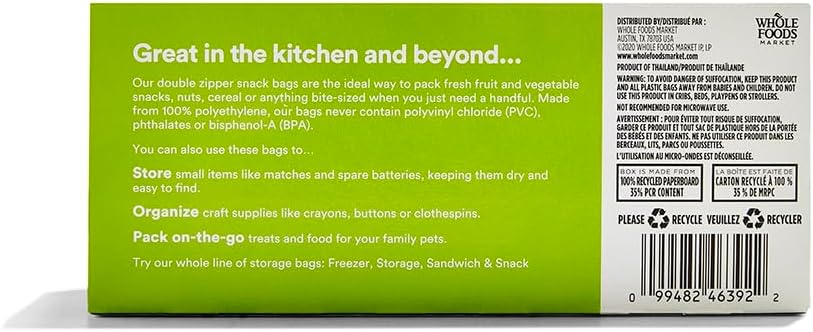 Be the first to review “365 by Whole Foods Market, Snack Size Storage Bags, Double Zipper, 50 Count” Cancel reply