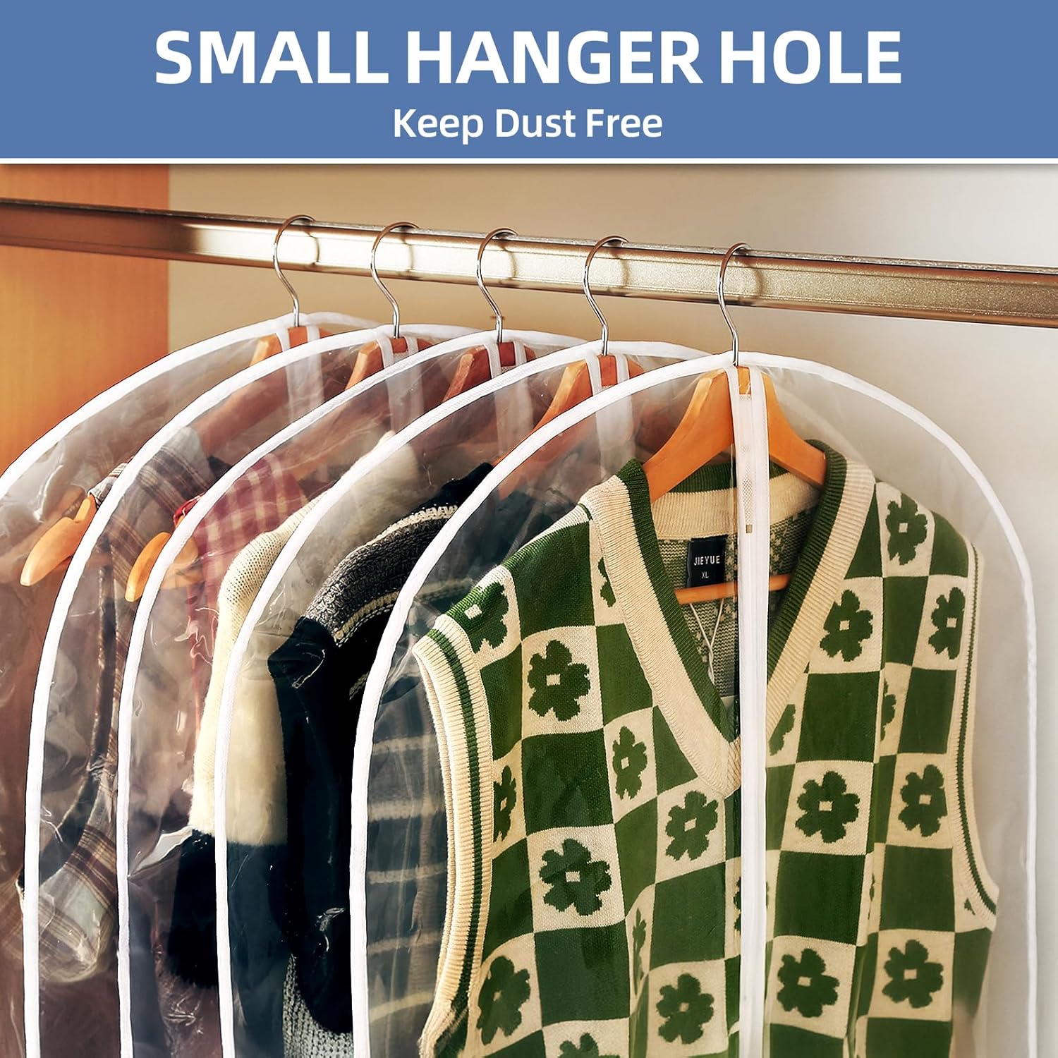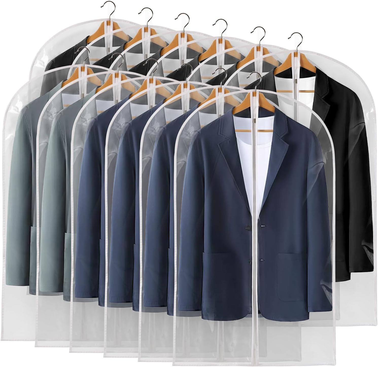 40″ All Clear Garment Bags for Hanging Clothes, 12 Packs Suit Bags for Closet Storage, Plastic Waterproof Suit Cover Bags with Zipper for Coats, Jackets, Shirts (Set of 12)