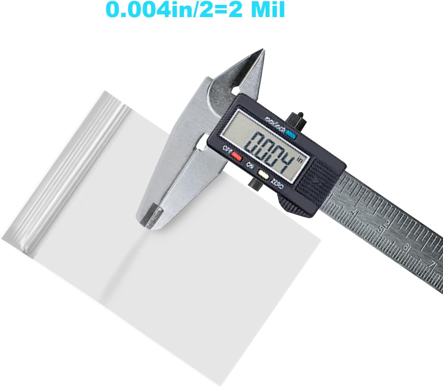 THICK 2 MIL POLY RECLOSABLE MINI BAGS: Our small bags two-sided thick 0.004” as picture 3 measured by calipers, one side thick roughly 2 mil=0.002”, food grade safe. Our small baggies will stay firmly closed, durable and reuseble zipper bags for jewelry pill packaging.