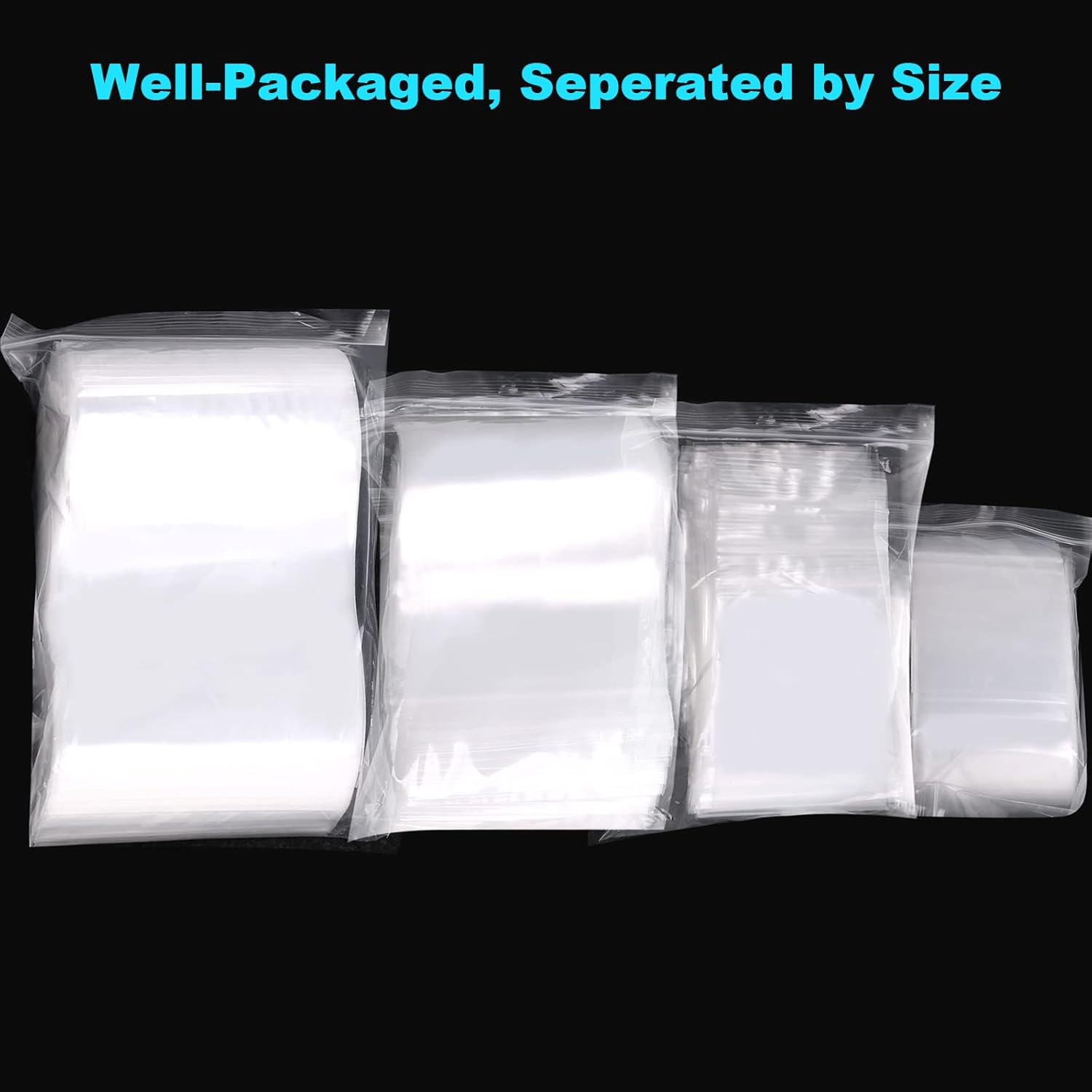 Our 400 pcs small plastic bags set separated by size, well packed, convenient you selection. Our plastic jewelry bags are great for organizing and storing your home’s items and keeping your home clutter-free!