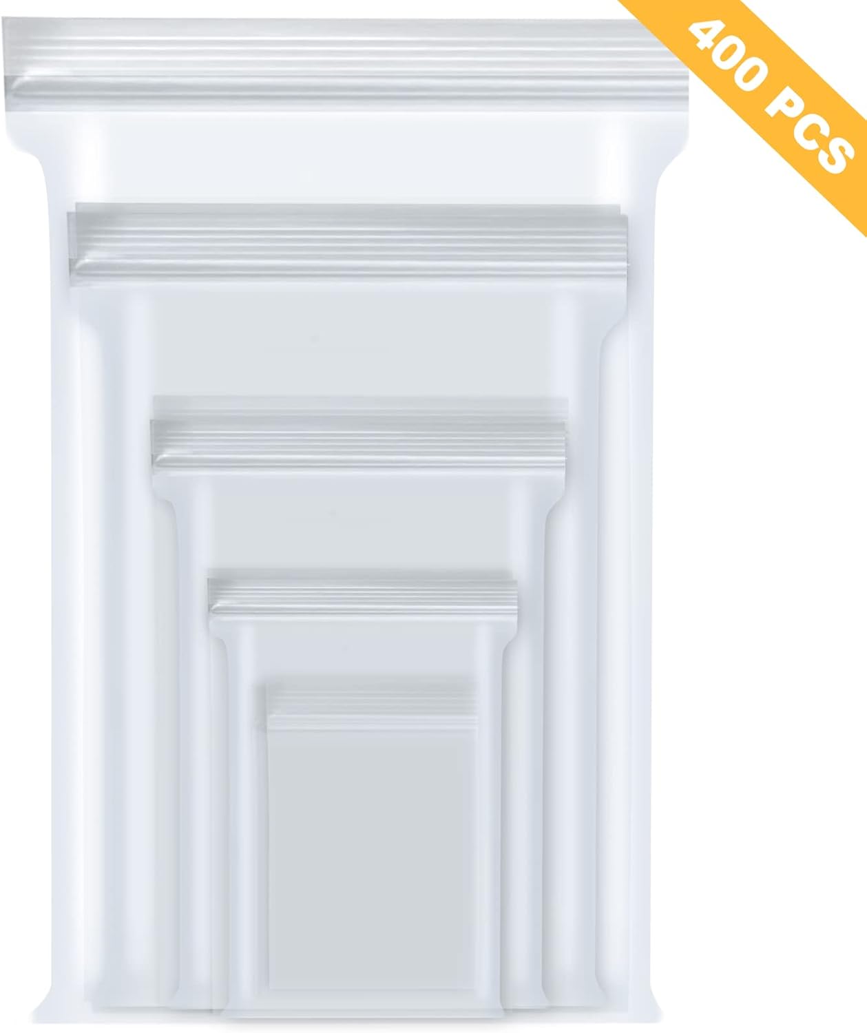 400 PCS SMALL PLASTIC BAGS: Our resealable clear jewelry bags have 4 assorted different sizes 6 x 4 inches/15 x 10 cm, 4.7 x 3.1 inches/12 x 8 cm, 3.5 x 2.4 inches/9 x 6 cm, 2.7 x 2 inches/7 x 5 cm, each size 100 pcs, total 400 pcs. Our separated by size, well packed, convenient you selection, our small baggies meet your different needs!