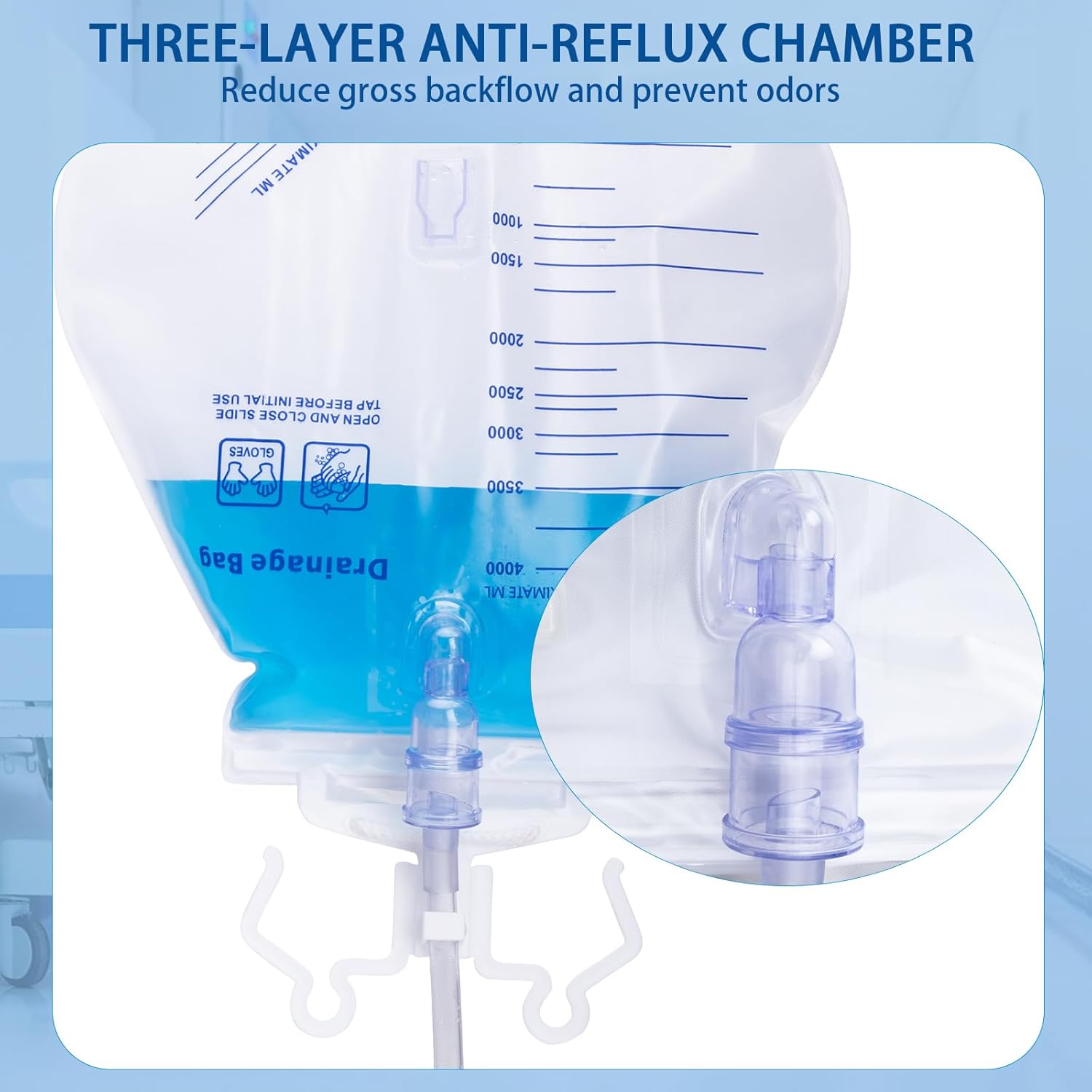 Enhanced Anti-Reflux Drip Chamber: Catheter Bags with three-layer backflow prevention room can better prevents backflow for smooth, stable drainage and faster flow.