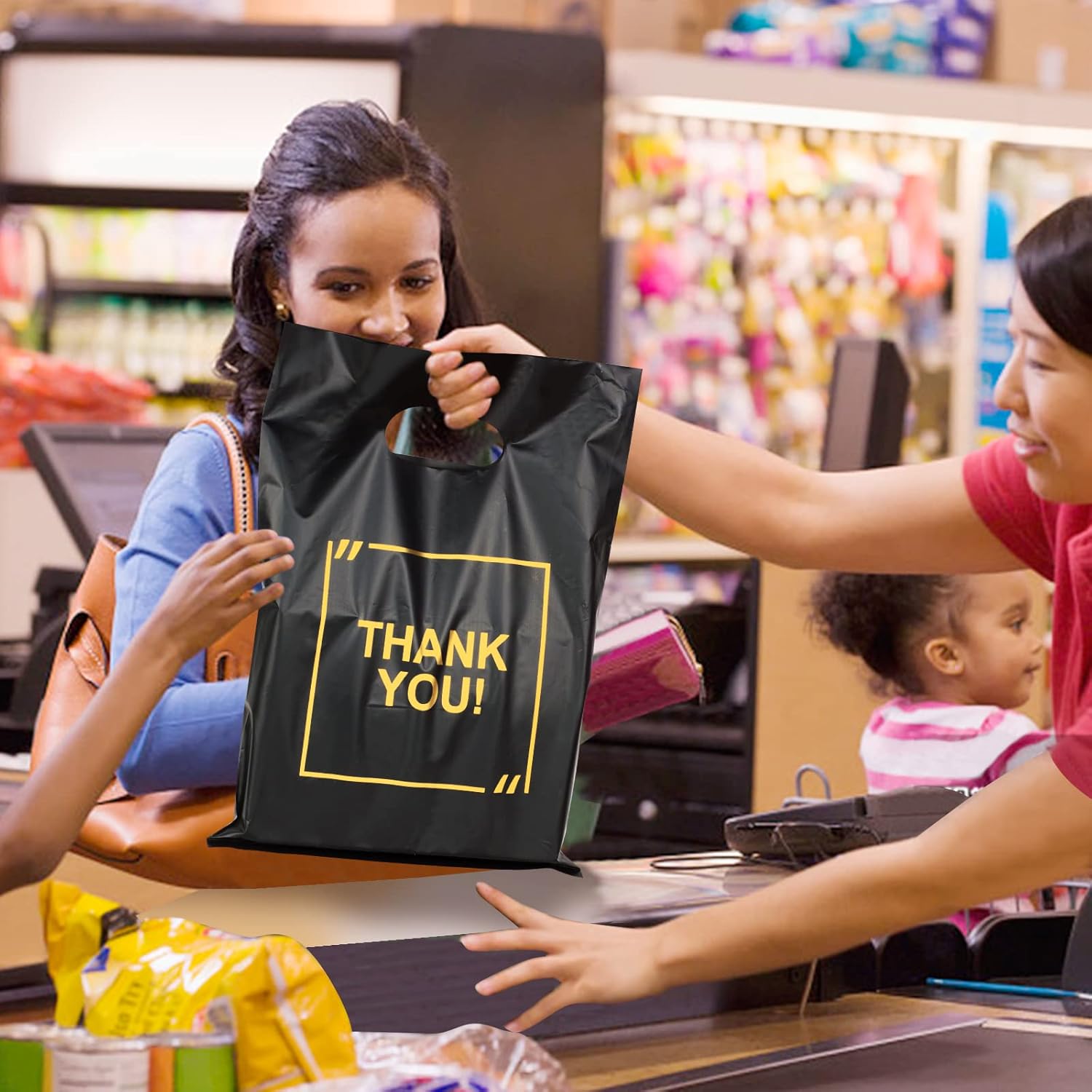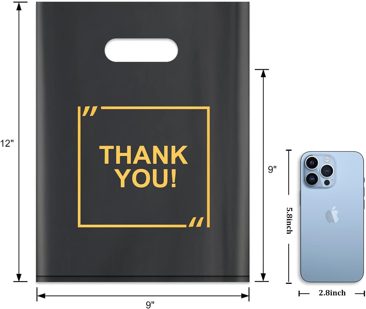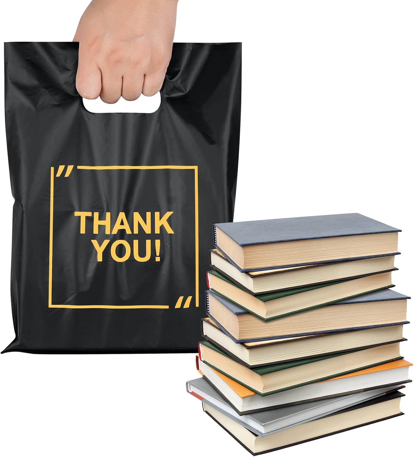 50 Pack Die Cut Plastic Shopping Bags with Thank You Logo 9×12 Merchandise Bags Extra Thick Glossy and Shopping Bags for Retail,Boutique Bags with Handles for Merchandise, Gifts, Trade Shows