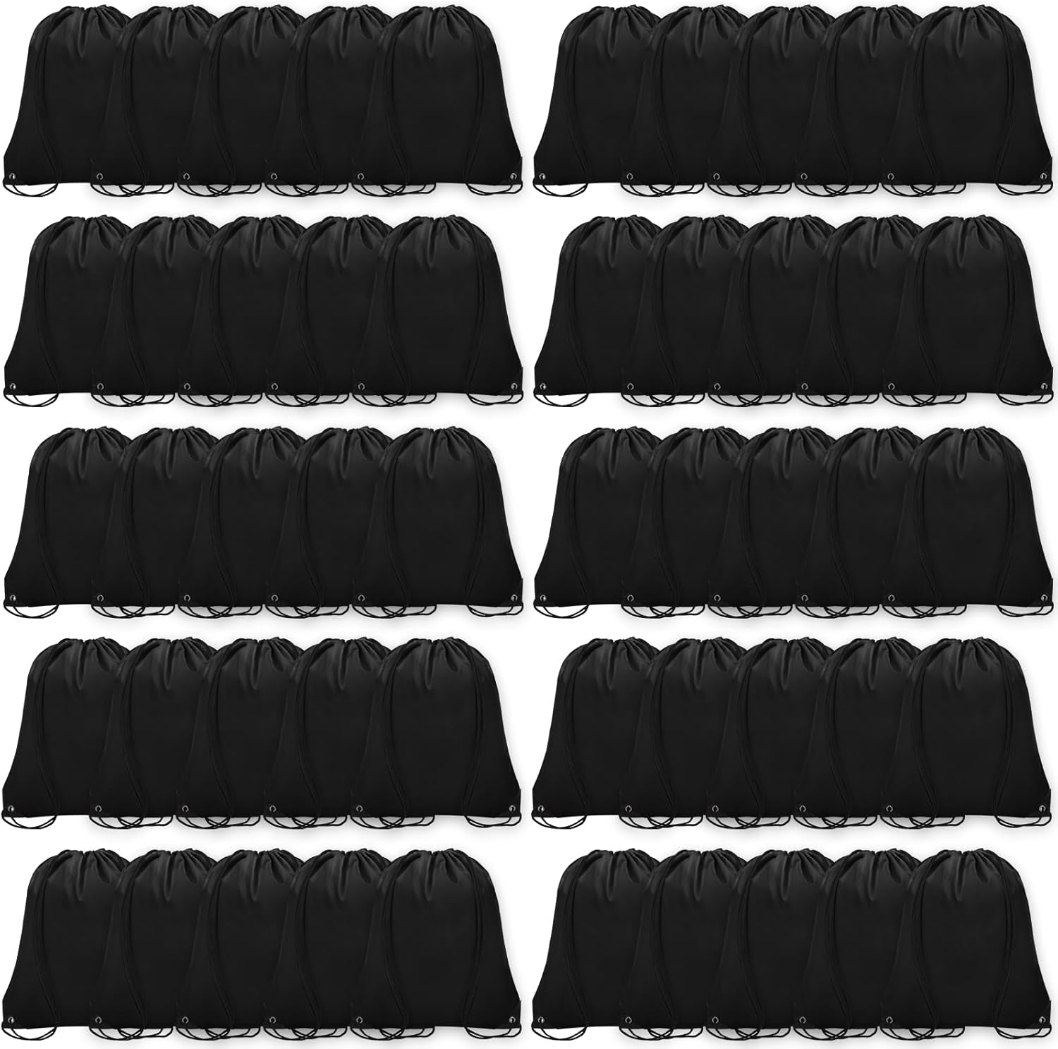 50Pcs Drawstring Backpack Bulk Cinch Bag, Drawstring Bags Polyester for Gym Sports Beach Party Trip (Black)