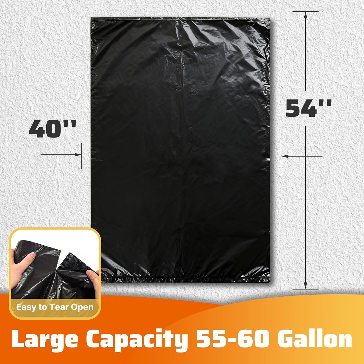 Large capacity: 55-60 gallon size perfect for home use, our large black trash bag’s size is 40 x 54 inches