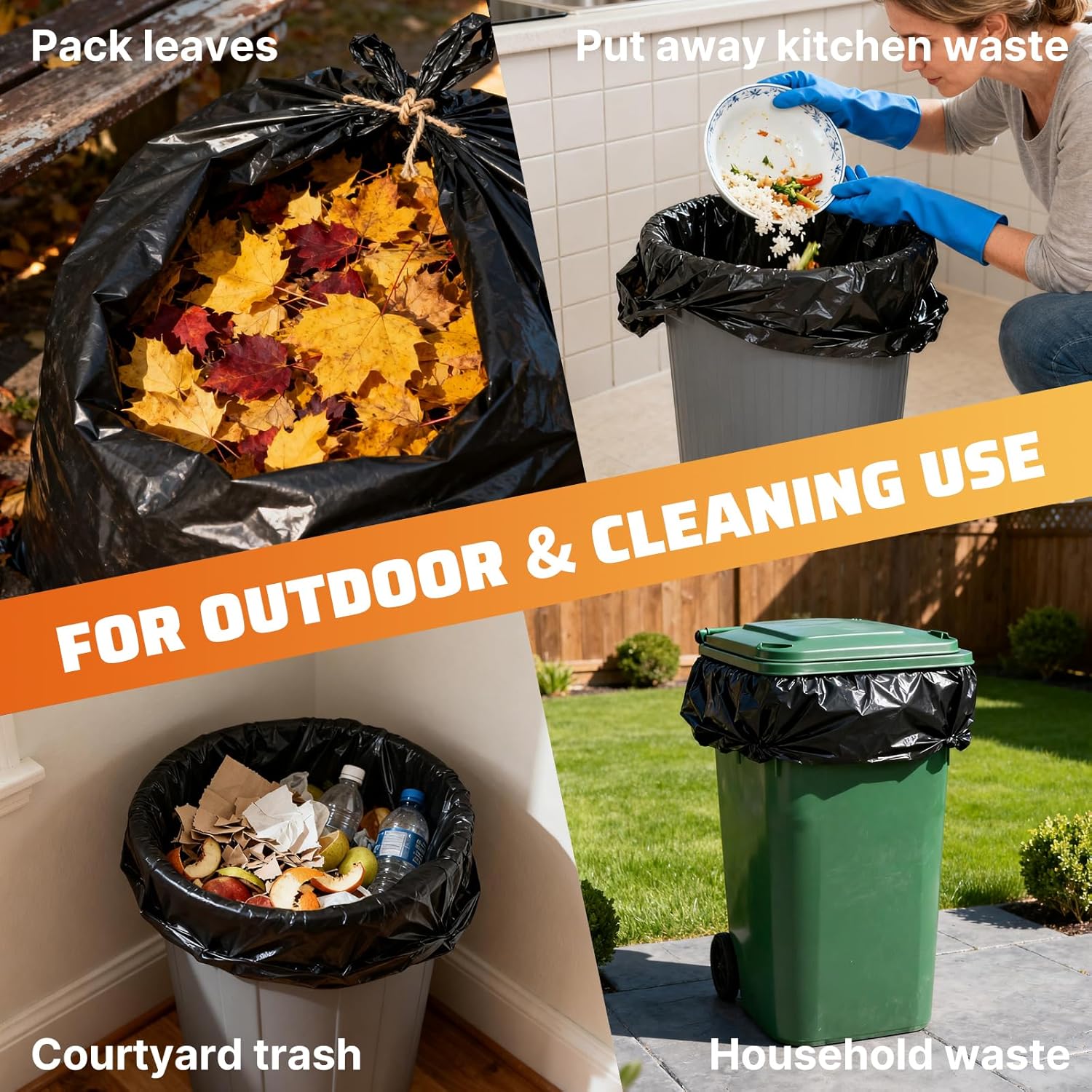 Perfect for leaves cleaning: Garbage bags are very suitable for cleaning leaves and making it easy to clean the yard