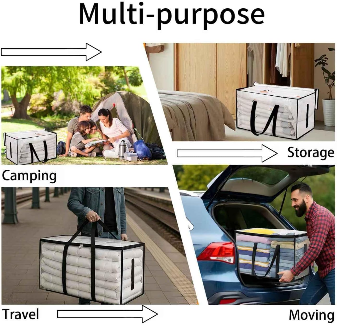 ❹【SMART SPACE SAVER】 → Folds to 1.5″ thickness in seconds – Store under beds/sofas. Reusable year-round for seasonal storage, camping gear, or disaster preparedness kits. Includes bonus storage strap.】