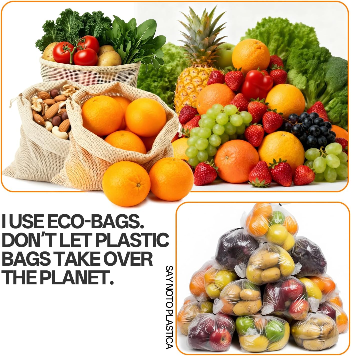 Tired of your fruits and vegetables spoiling too quickly in damp, airtight plastic bags? Make the smart switch to our breathable, eco-friendly produce bag set! Designed for the conscious shopper, these sturdy mesh bags are the perfect all-in-one solution for your grocery trips, home storage, and on-the-go needs. Say goodbye to single-use plastics and hello to organized, sustainable living.