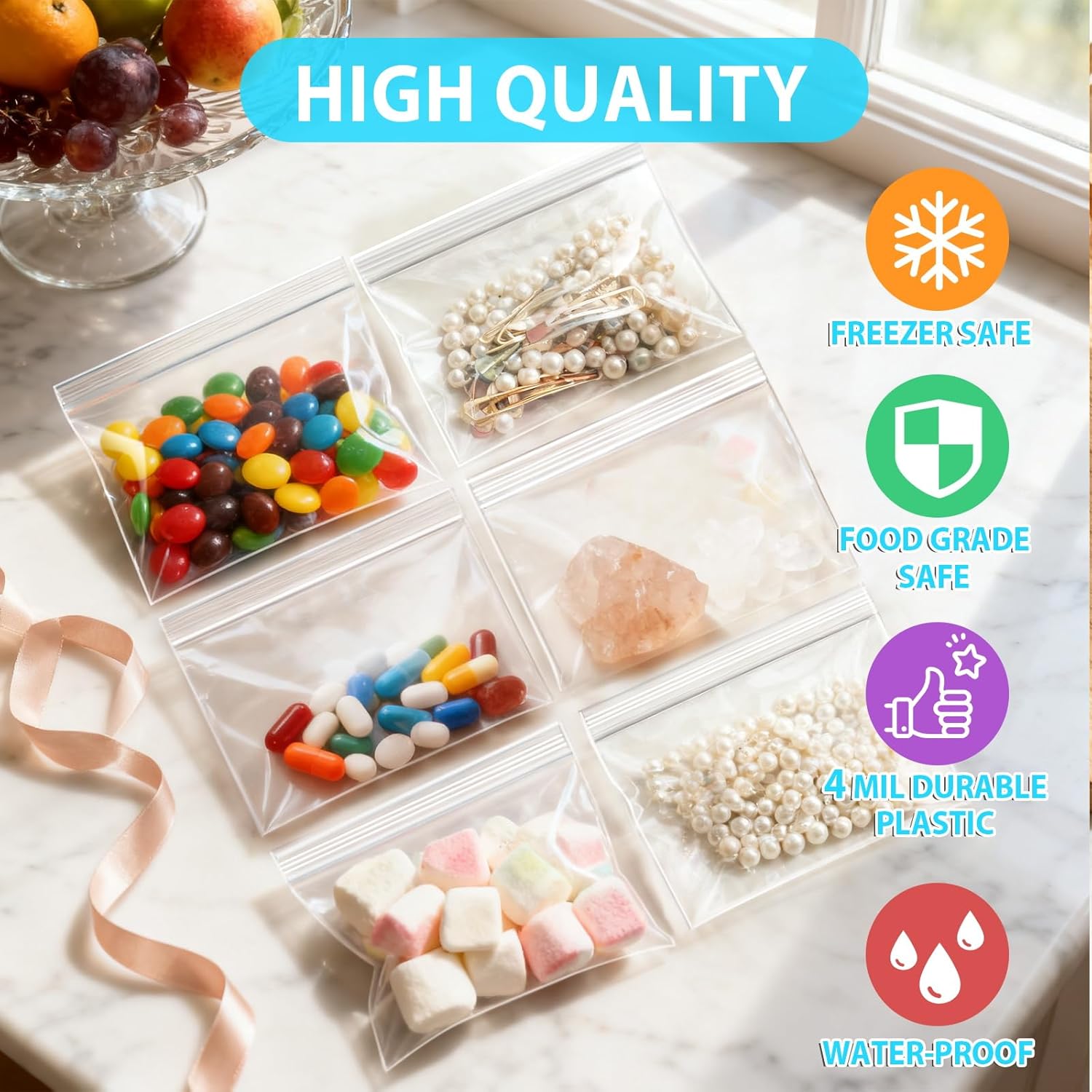Extremely Versatile: The heavy duty ziplock bags are perfect for storing snacks, fruits, nuts, candy, coffee, tea, baking ingredients, jewelry, coins, daily pills/vitamins, small toys, craft supplies, office essentials. Great for packaging and selling small merchandise, creating professional samples.