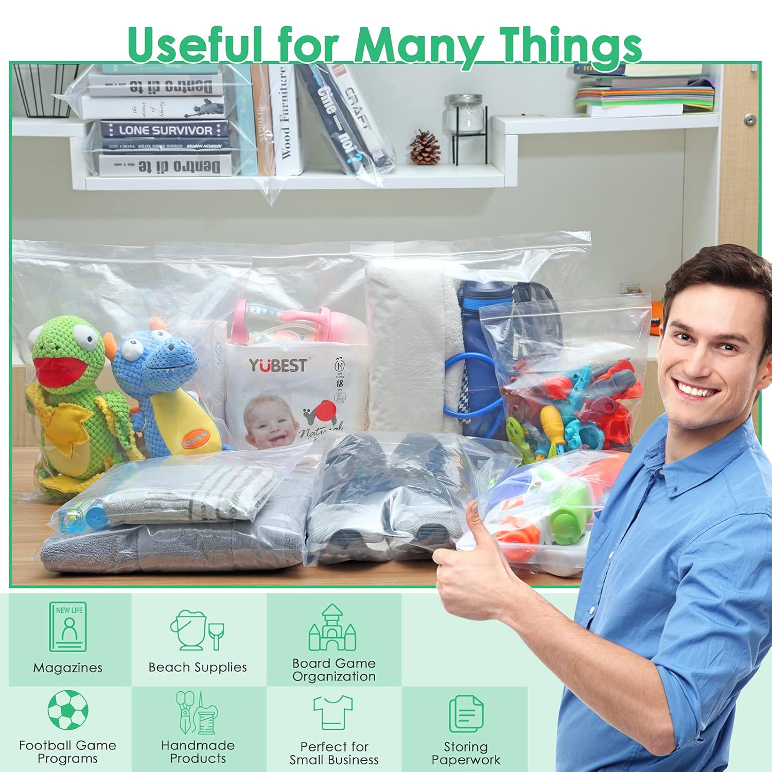 🍀PERFECT FOR SMALL BUSINESS – Using those zip plastic bags to put your custom T-shirts in. These are perfect! They fit all sizes T-shirts and a couple hoodies too, stored items that are listed for sale and as extra protection during shipping. Perfect for you at home small business!