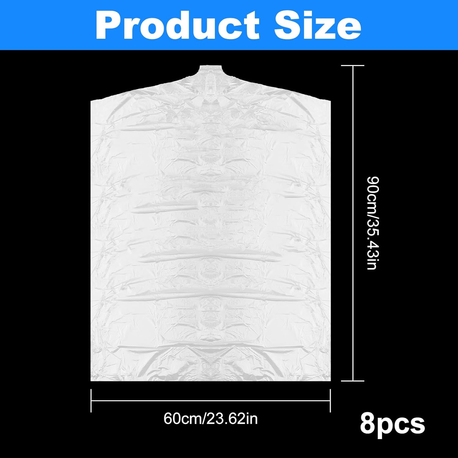 8-Pack Garment Bags – 60x90cm Dry Cleaning Bags for Hanging Clothes Storage – Dust Proof Clear Plastic Clothes Covers for Home Storage Clothing Stores & Dry Cleaners