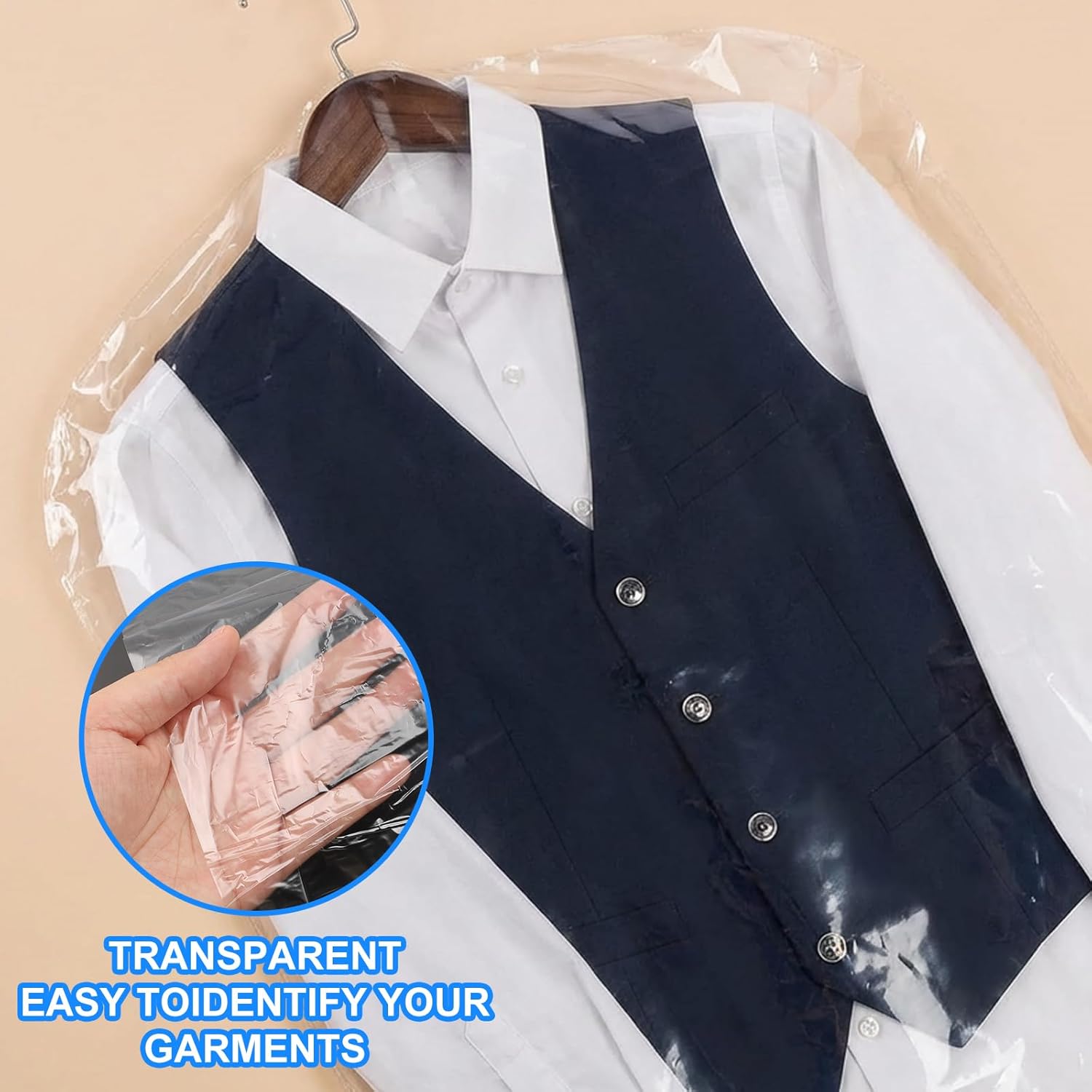 Crystal Clear Visibility & Easy Access – Instantly identify your stored clothing without the need to unzip or remove the bag. The transparent design saves you time and hassle when searching for a specific outfit in a crowded closet; The Dust Cover for Suit is perfect for home wardrobes (find winter coats in summer) or clothing stores (display garments while protecting them).