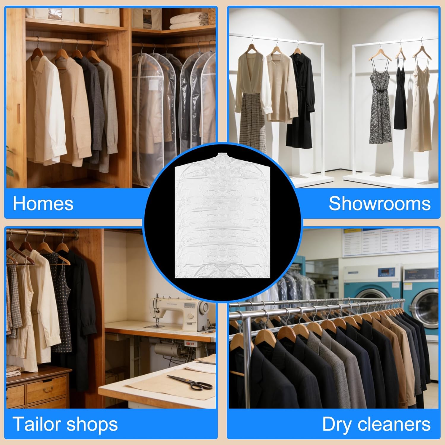 8-Pack Bulk for Multi-Scene Use: 8 large garment bags — enough to store 8+ long garments. Protect a variety of garments including wedding dresses, evening gowns, business suits, coats, and seasonal clothing. This multi-pack offers exceptional value for extensive storage needs. (ideal for families, retailers, and dry cleaning businesses)