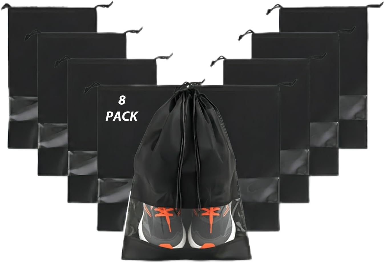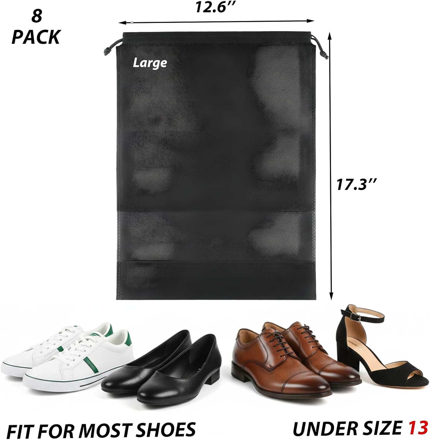 8 Pack Large Shoes Bag, Travek Shoes Bag Organizer for Home, Outdoor, Sports, Golf, Travel, Gem (Black)