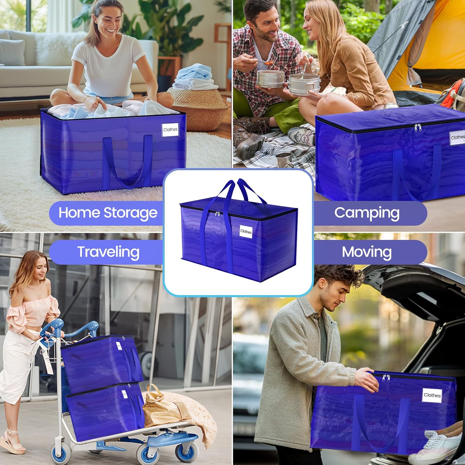 8 Pack Moving Storage Bags Heavy-Duty with Zippers and Reinforced Handles, Moving Supplies Packing Boxes for Moving, Storing, Saving Space, Blue Plastic Storage Totes 93 L(24 Gallon)